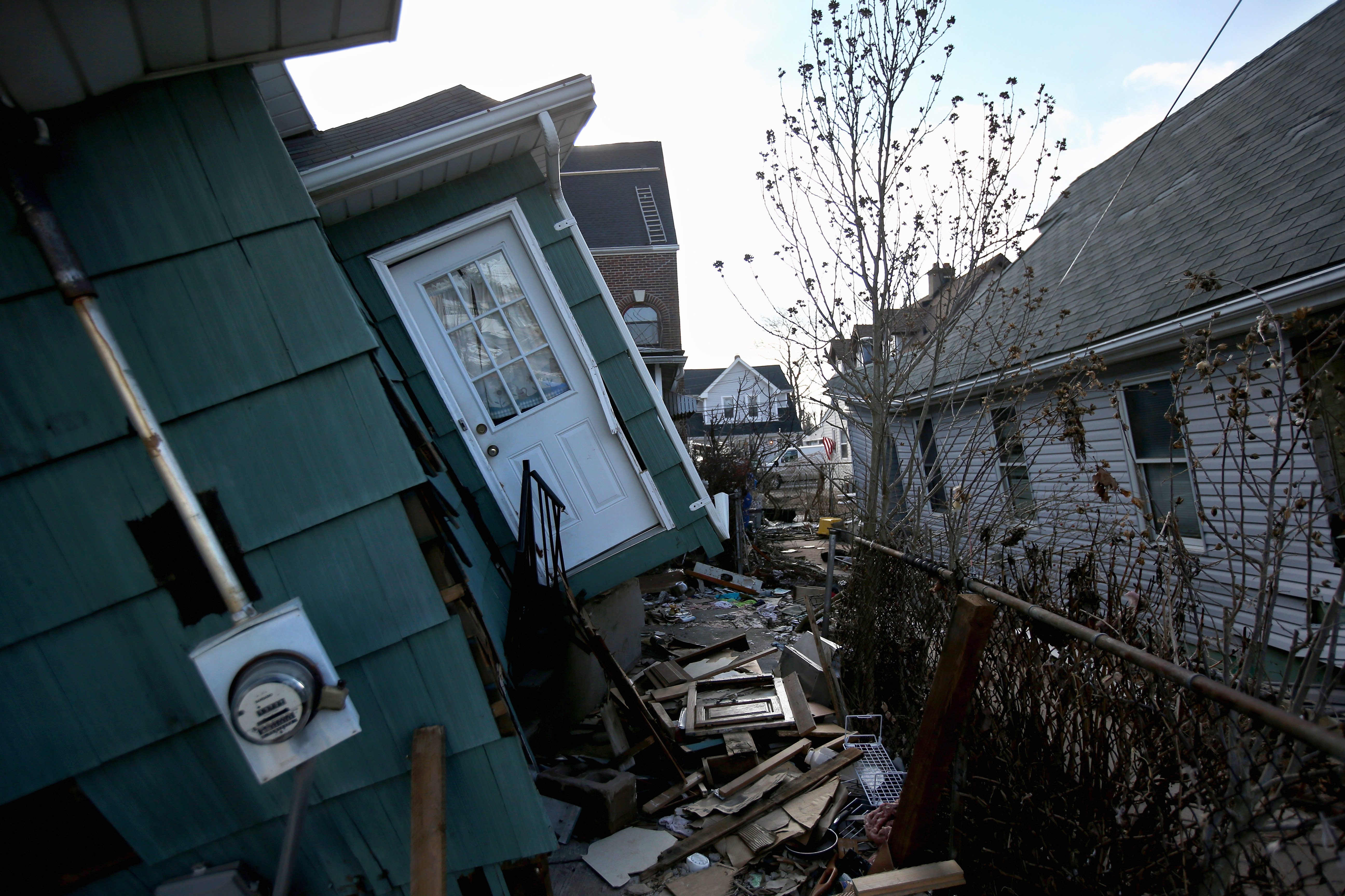 (Photo: A storm-damaged home awaits demolition on January 4, 2013 in the New Dorp area of the Staten Island borough of New York City. By John Moore/Getty Images)
