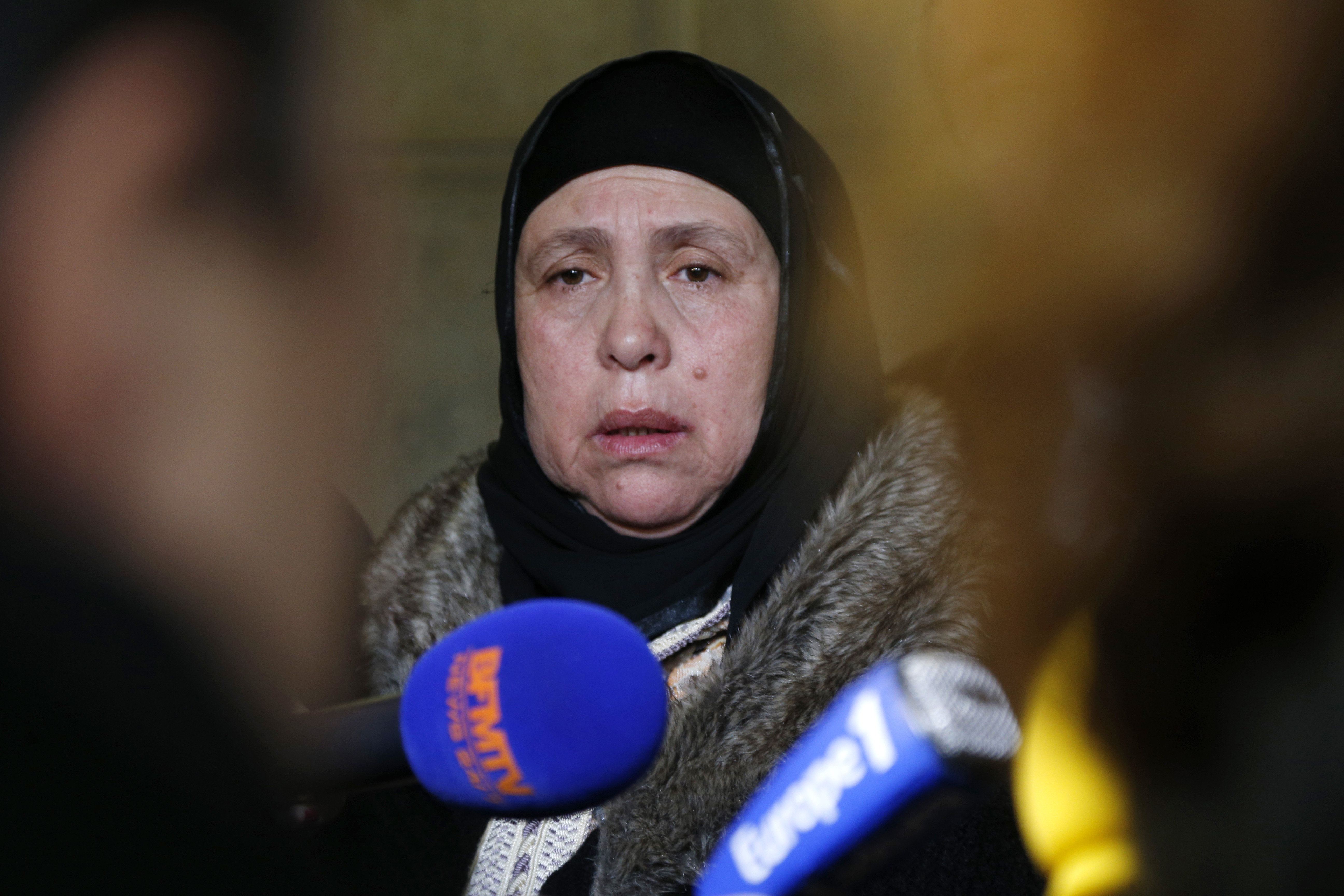 The mother of Mohammed Legouad, one of the victims of Islamist gunman Mohamed Merah in March 2012, speaks to the media upon her arrival at Paris courthouse on February 25, 2013 before meeting the investigating anti-terror judges. By Francois Guillot/AFP/Getty Images.