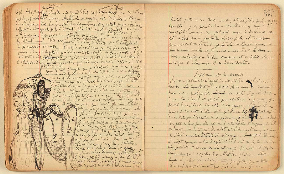 (Photo of one of Marcel Proust’s notebooks on display. Cahier 12, 1909 NAF 16652. Bibliothèque nationale de France (BnF), Paris, France © BnF, Dist. RMN-Grand Palais)