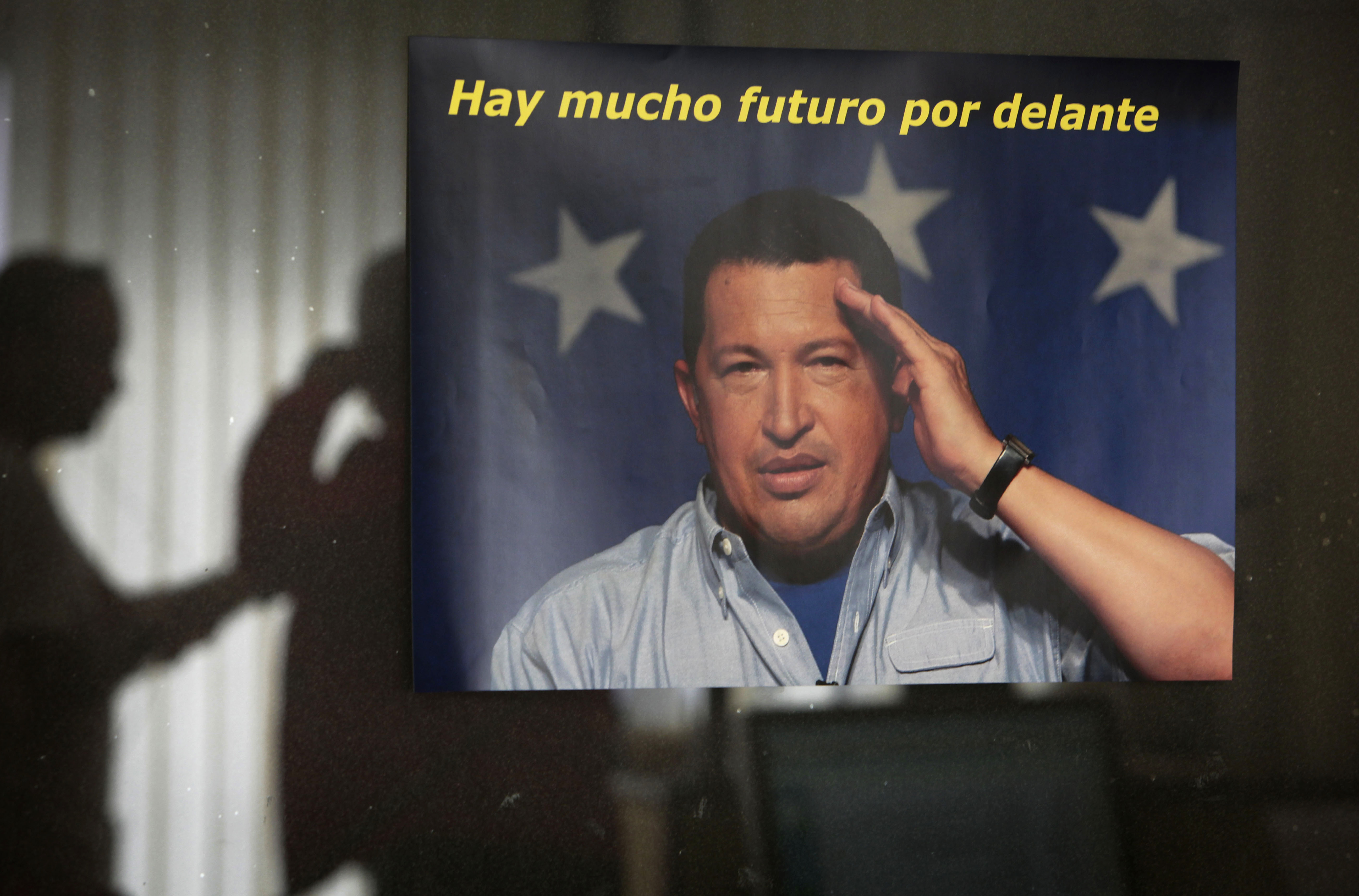 (Photo: A poster of President Hugo Chavez reading ‘There is a great future ahead’ is seen at the consulate of Venezuela of Santa Cruz de Tenerife on March 6, 2013. By Desiree Martin/AFP/Getty Images)