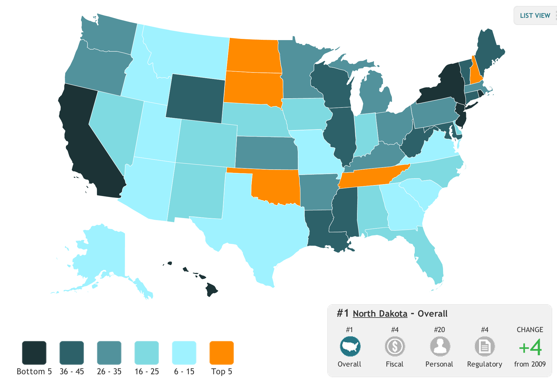 The Mercatus Center, which skews Libertarian, has ranked the 50 states in terms of freedom. The results:
