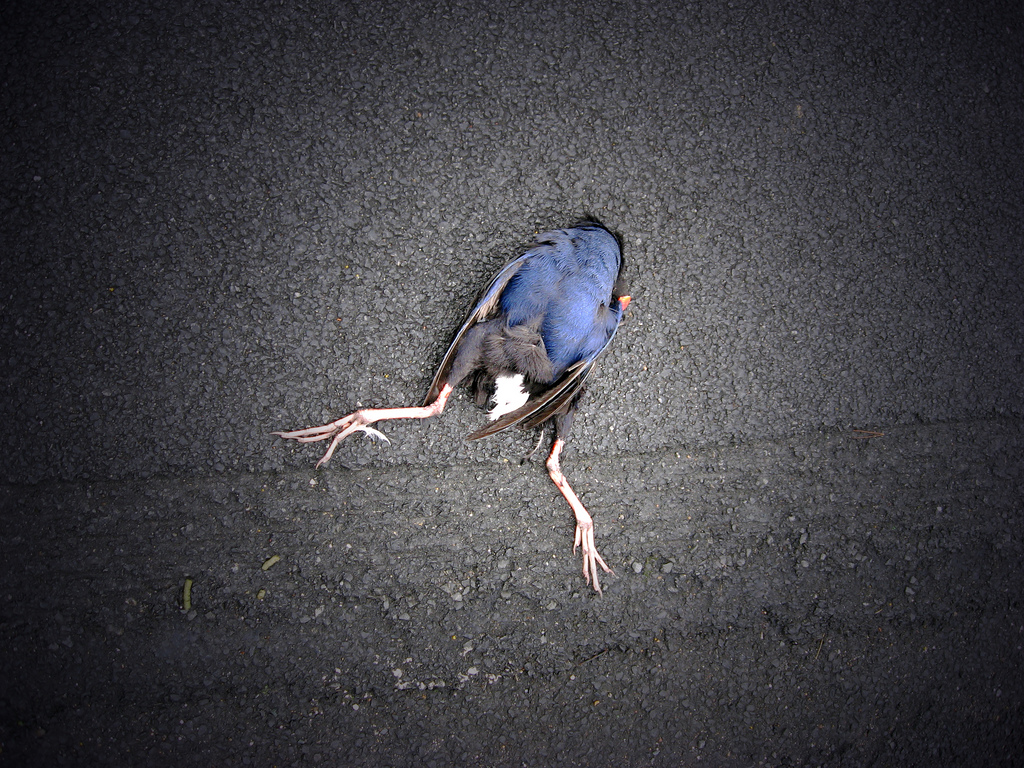 The bird in your post a Pukeko, a prolific New Zealand waterfowl species that gets run over often. It does not get run over in Montana though.