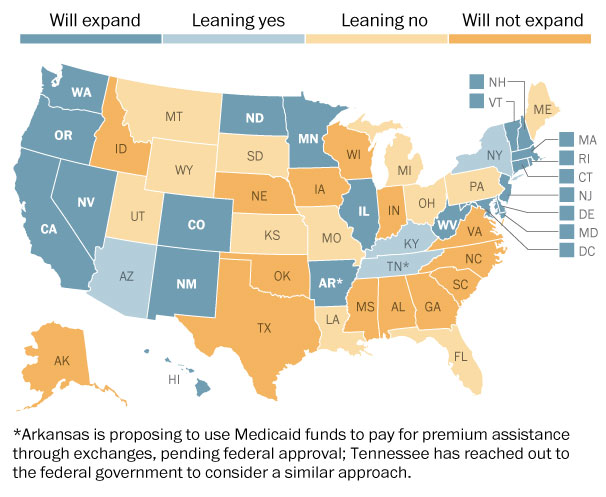 I have become far less confident that patients can act as real consumers in the healthcare marketplace. There’s such an imbalance of knowledge and the consumer is almost always desperate for a solution, with no leverage to bargain with. Meanwhile, the Florida legislature just adjourned without providing funds for a Medicaid expansion, “join[ing] 24 other states that have either decided against expanding Medicaid, or are leaning in that direction, according to analysts at Avalere Health [who created the above chart].”