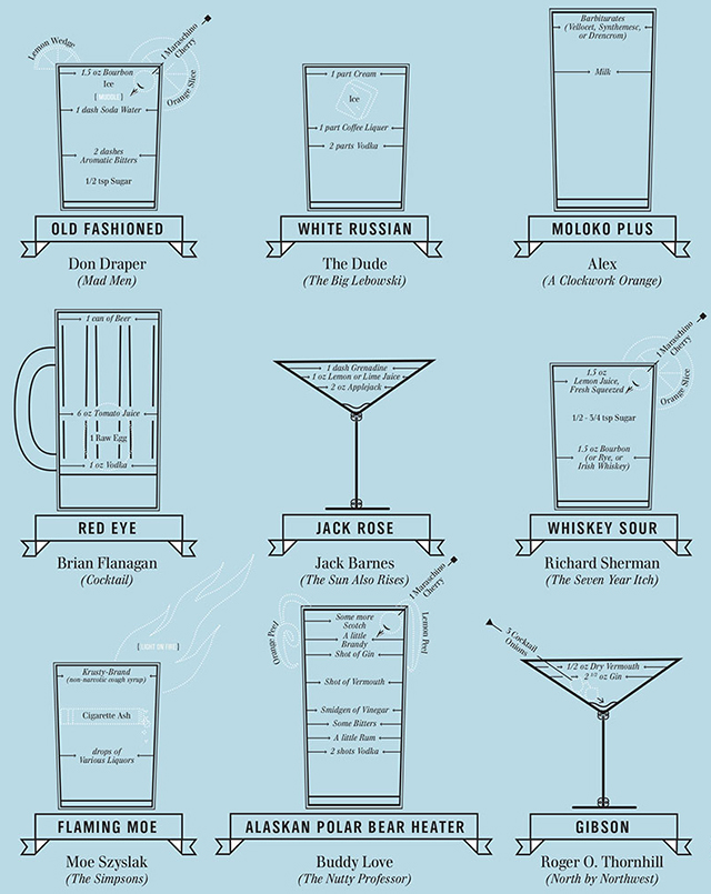 After the jump is a portion of the Cocktail Chart of Film & Literature, a “catalog of 49 drinks culled from great works of film and literature”: