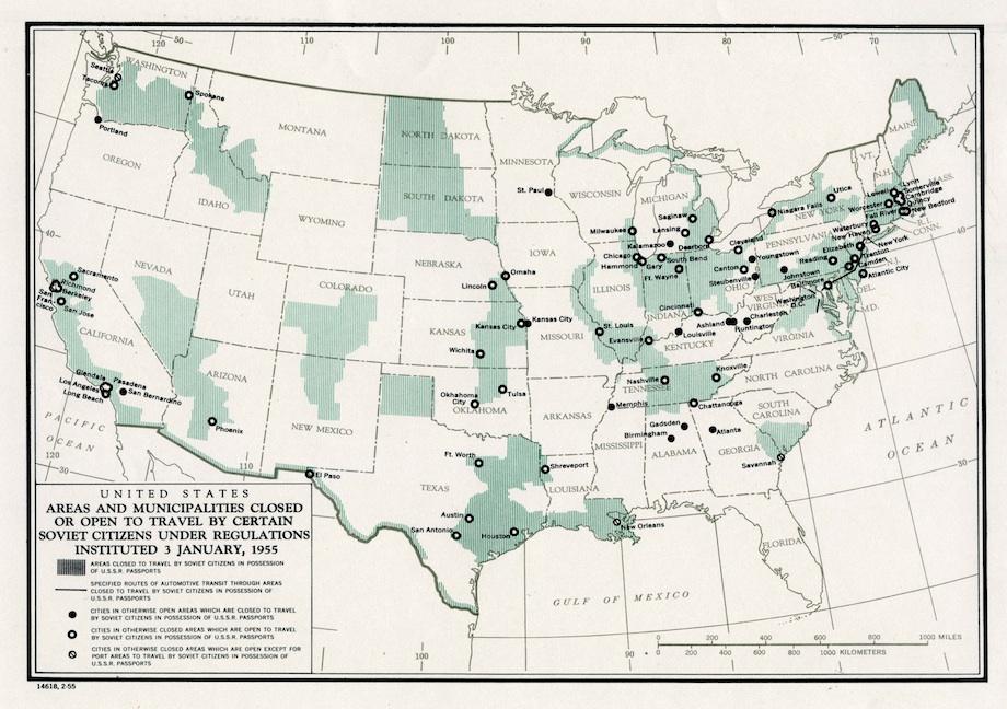 From the annals of paranoia – during the Cold War, large parts of the US was off limits to Soviets: