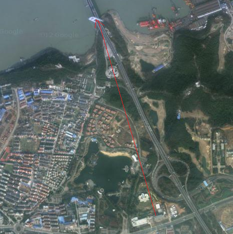Most weeks I look at the photo and figure I’ll never get it. Other weeks I think I have a shot, but don’t find anything conclusive after looking for a little while. On this rainy Saturday afternoon, I’ve finally found my first window. This is Jiangyin, China. The photo was taken from the Sheraton Tianjin Hotel from approximately the spot indicated in the attached image looking toward the Jiangyin Bridge over the Yangtze River: