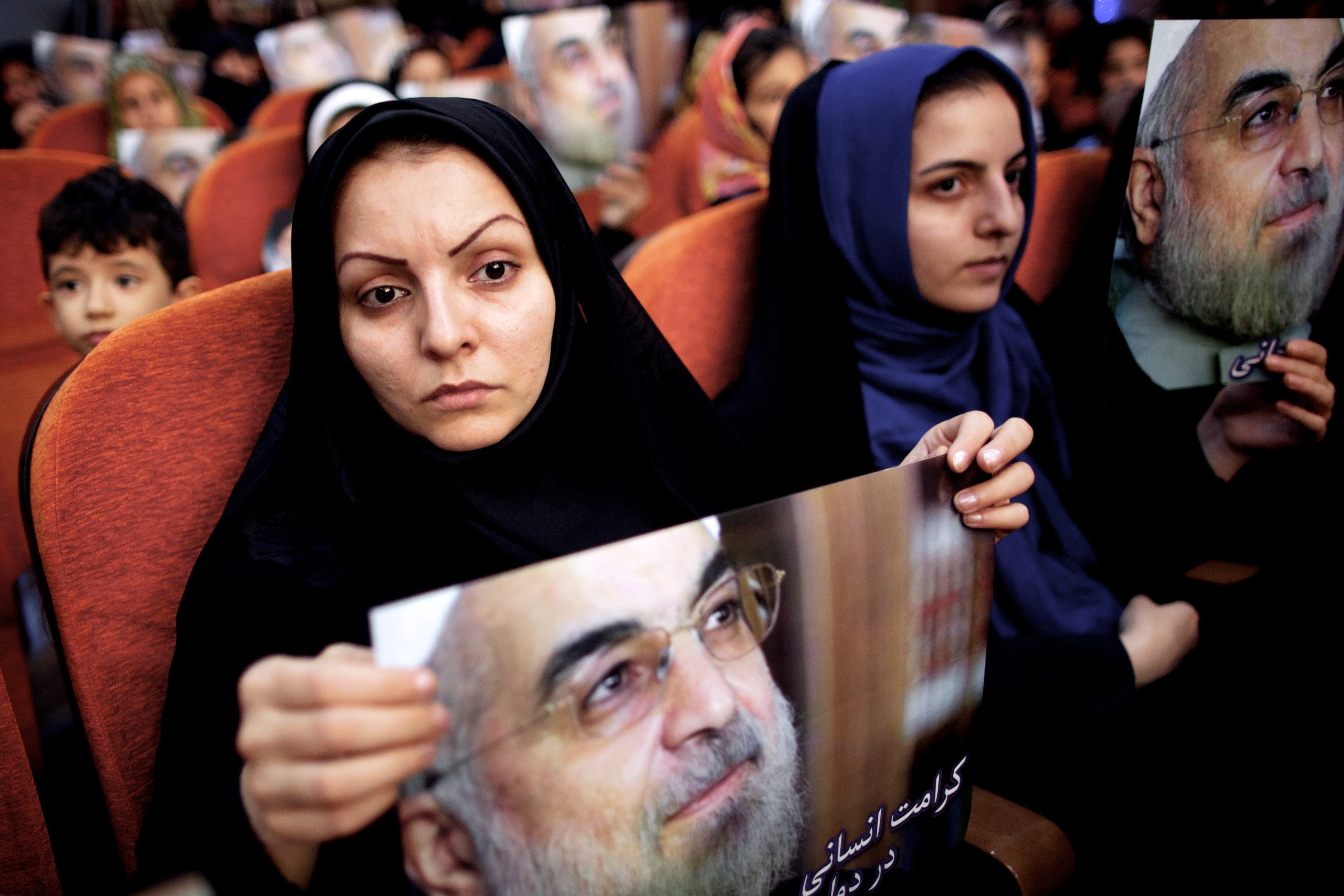 (Photo: Iranian supporters hold posters featuring Hassan Rowhani, moderate Iranian presidential candidate and former top nuclear negotiator, during one of his electoral campaign rallies in northern Tehran on May 30, 2013. Rowhani, the only cleric in the race, says his experience in leading talks with the so-called P5+1 group – the United States, Russia, China, France, Britain plus Germany – could help resolve the nuclear standoff. By Behrouz Mehri/AFP/Getty Images)