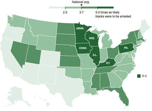It’s no secret that in big cities like D.C. and New York blacks are arrested for pot far more often than whites, despite comparable usage rates. But the ACLU is the first group to extrapolate arrest numbers across the country. … [In Morgan County, AL] blacks make up 12 percent of the population and 100 percent of the marijuana arrests.
