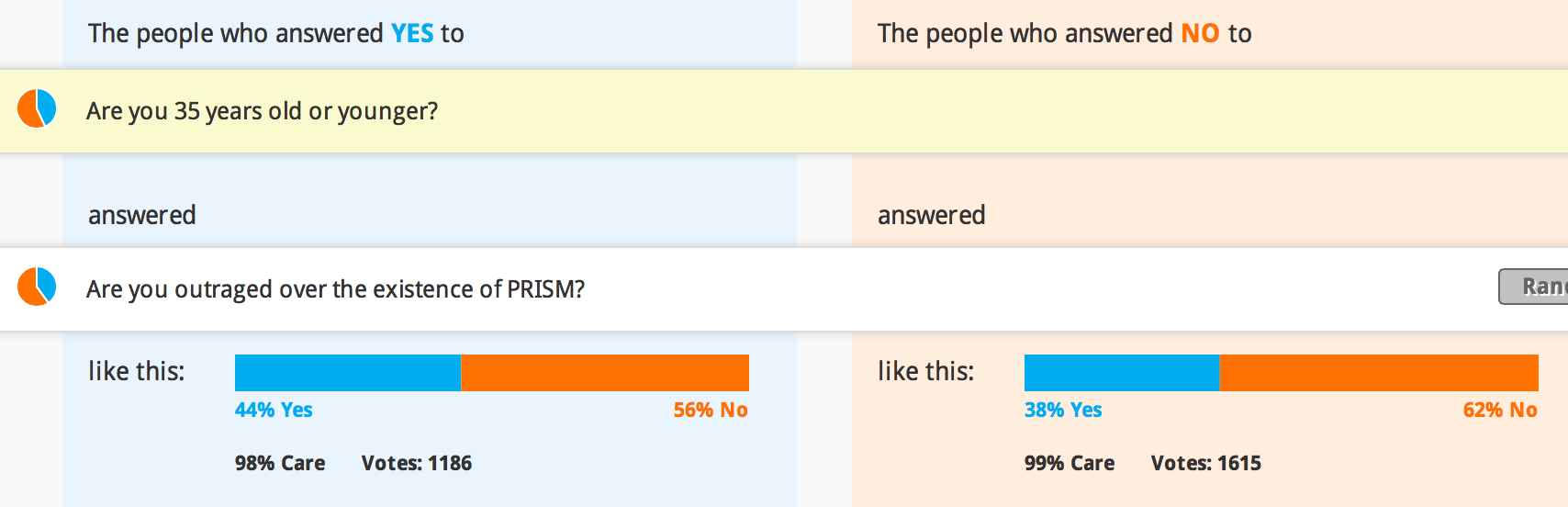 According to the Urtak survey we ran last week, on a range of questions related to surveillance, it appears millennials do in fact give a damn: