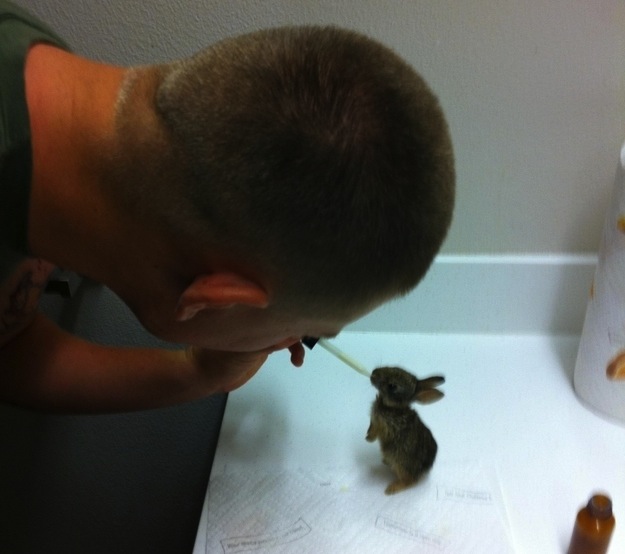 A Navy corpsman at Camp Pendleton found four small bunnies in a hole next to their dead mother and decided to secretly raise them in his barracks. More photos and videos here. Megan McCormick squeals: