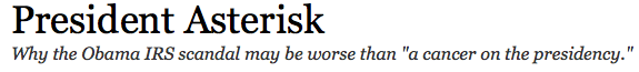 It was the legitimate one: not the Benghazi bullshit or a surveillance program checked by Congress and the courts, whose secrecy was the scandal. This was the accusation that Barack Obama was Richard Nixon, ordering the IRS to target conservative – and only conservative – groups in their legitimate attempt to check on whether “social welfare” groups actually were just campaign machines. To give a sense of how far the Republican partisans went with this – completely unproven – allegation, let’s leave Darrell Issa behind, shall we? He’s such a creep he’d say anything anyhow to advance his own career.