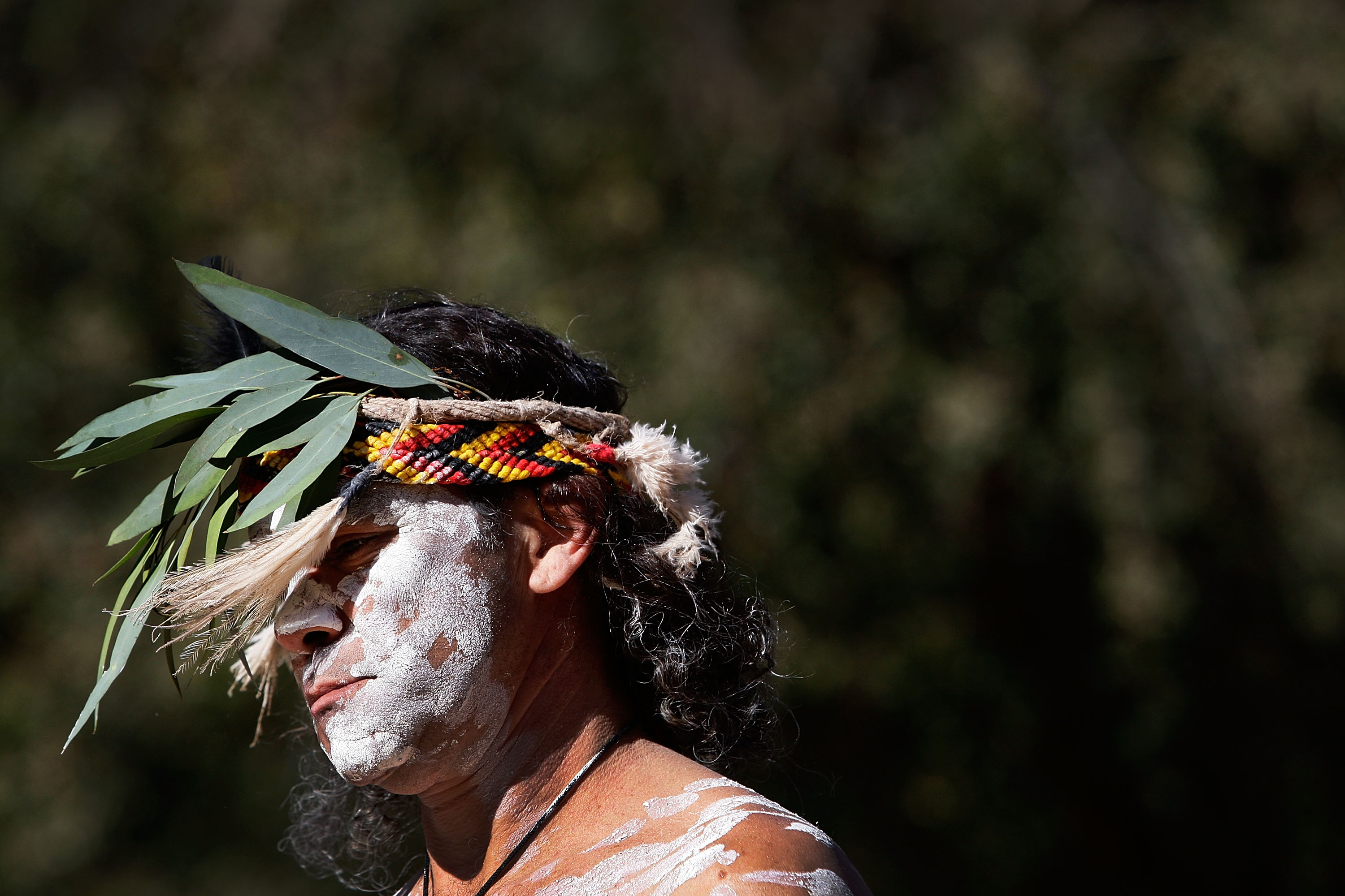 Glen Doyle a member of the Wuriniri Dance Group performs during a public NAIDOC celebration at Hyde Park on July 8, 2013 in Sydney, Australia. NAIDOC is a celebration of Aboriginal and Torres Strait Islander cultures and an opportunity to recognise the contributions of Indigenous Australians. By Lisa Maree Williams/Getty Images.