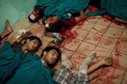 CAIRO, EGYPT – JULY 8: (EDITORS NOTE: Image contains graphic content.) The bodies of men lie on the floor of a morgue at the Liltaqmeen al-Sahy Hospital in Cairo’s Nasr City district, after allegedly being killed during a shooting at the site of a pro-Morsi sit-in in front of the headquarters of the Egyptian Republican Guard on July 8, 2013 in Cairo, Egypt. Egyptian health ministry officials are reporting at least 42 people were killed and more than 300 injured in the incident early on Monday morning, which allegedly occurred as supporters of deposed Egyptian President Mohammed Morsi attending the sit in were performing dawn prayer. The demonstrators at the sit in were demanding the release of Morsi, who they believe is being held inside the Republican Guard headquarters. (Photo by Ed Giles/Getty Images)