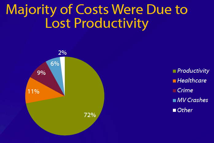 Excessive drinking costs the economy more than $220 billion — or about $1.90 per drink, according to the Center for Disease Control and Prevention, which studies the negative externalities of alcohol consumption each decade. Seventy-two percent of the costs came from lost workplace productivity, according to the 2006 survey, which suggests that the economic drag from hangovers is about $160 billion (… also the total cost of natural catastrophes in 2012.)