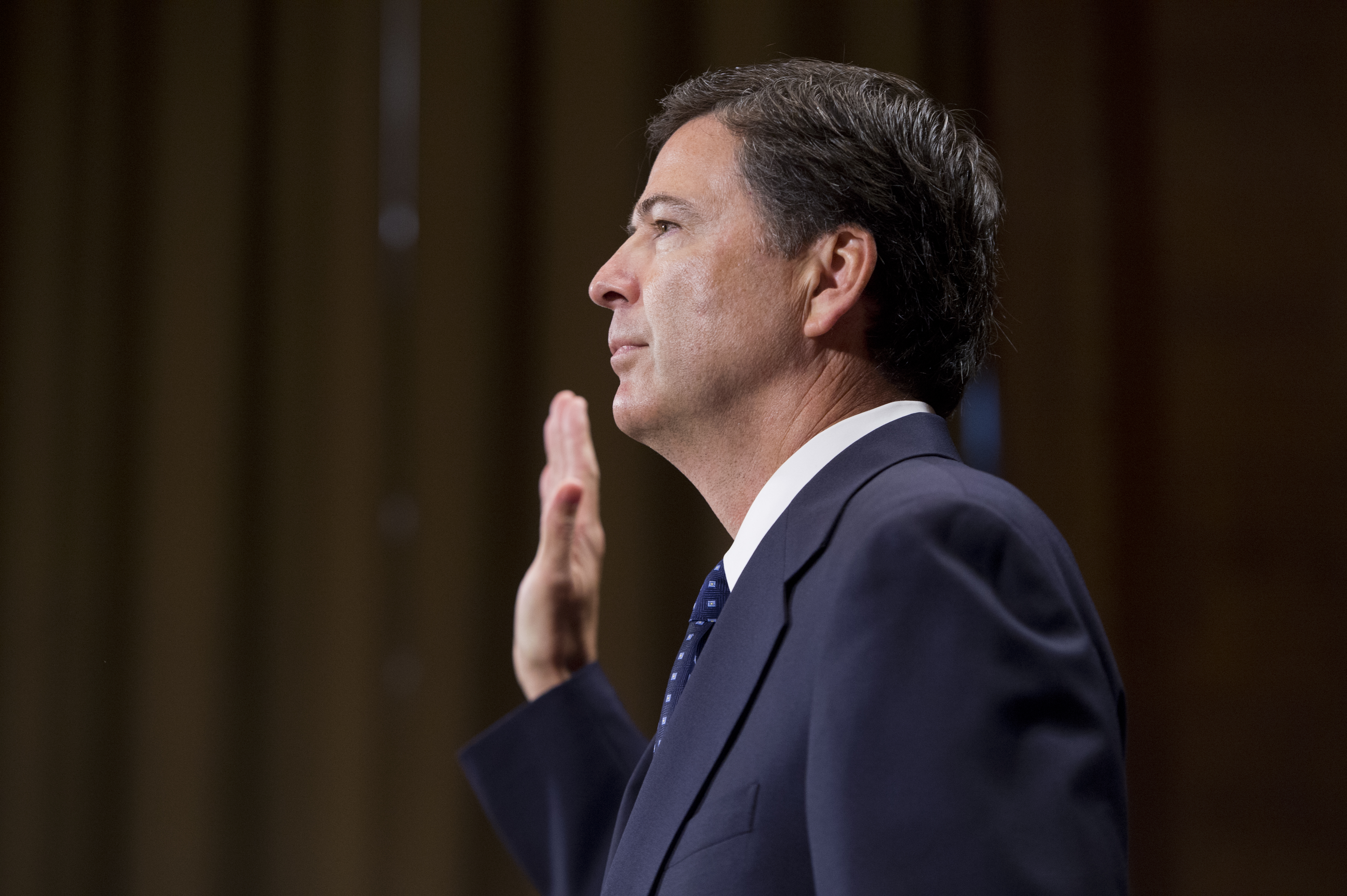 (Photo: James Comey, nominee for FBI Director, is sworn in to his conformation hearing before the Senate Judiciary Committee in Dirksen Building. By Tom Williams/CQ Roll Call via Getty.)