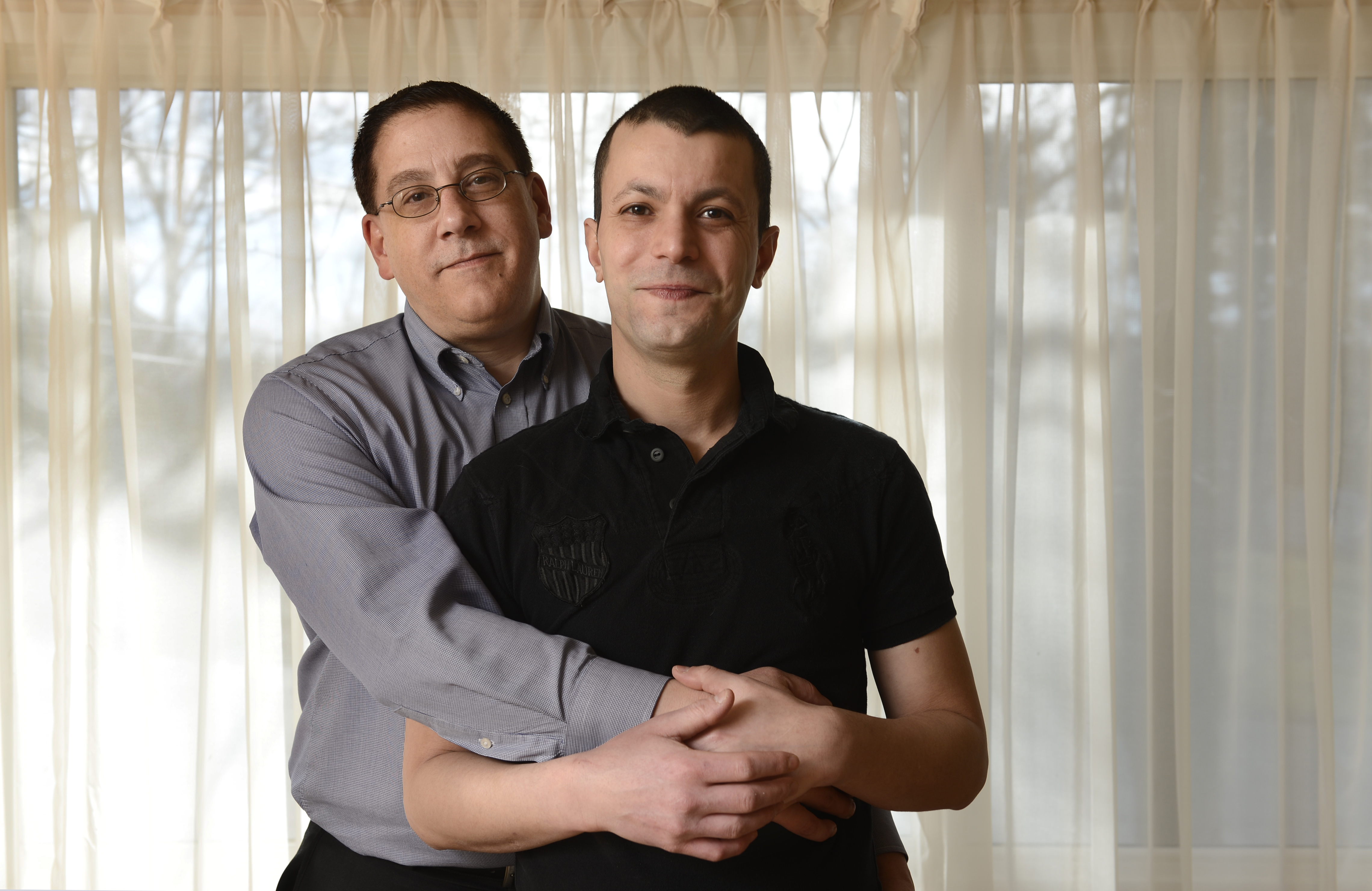 (Photos: GOP candidate for Attorney General Ken Cuccinelli campaigning on election day in Northern, Virginia. By Marvin Joseph/TWP/Getty. Tim Coco (left) and his husband Genesio Oliveira pose for a photo at their home in Haverhill, Mass., Saturday, Feb. 2, 2013. Oliveira is from Brazil. By Gretchen Ertl for The Washington Post via Getty Images.)