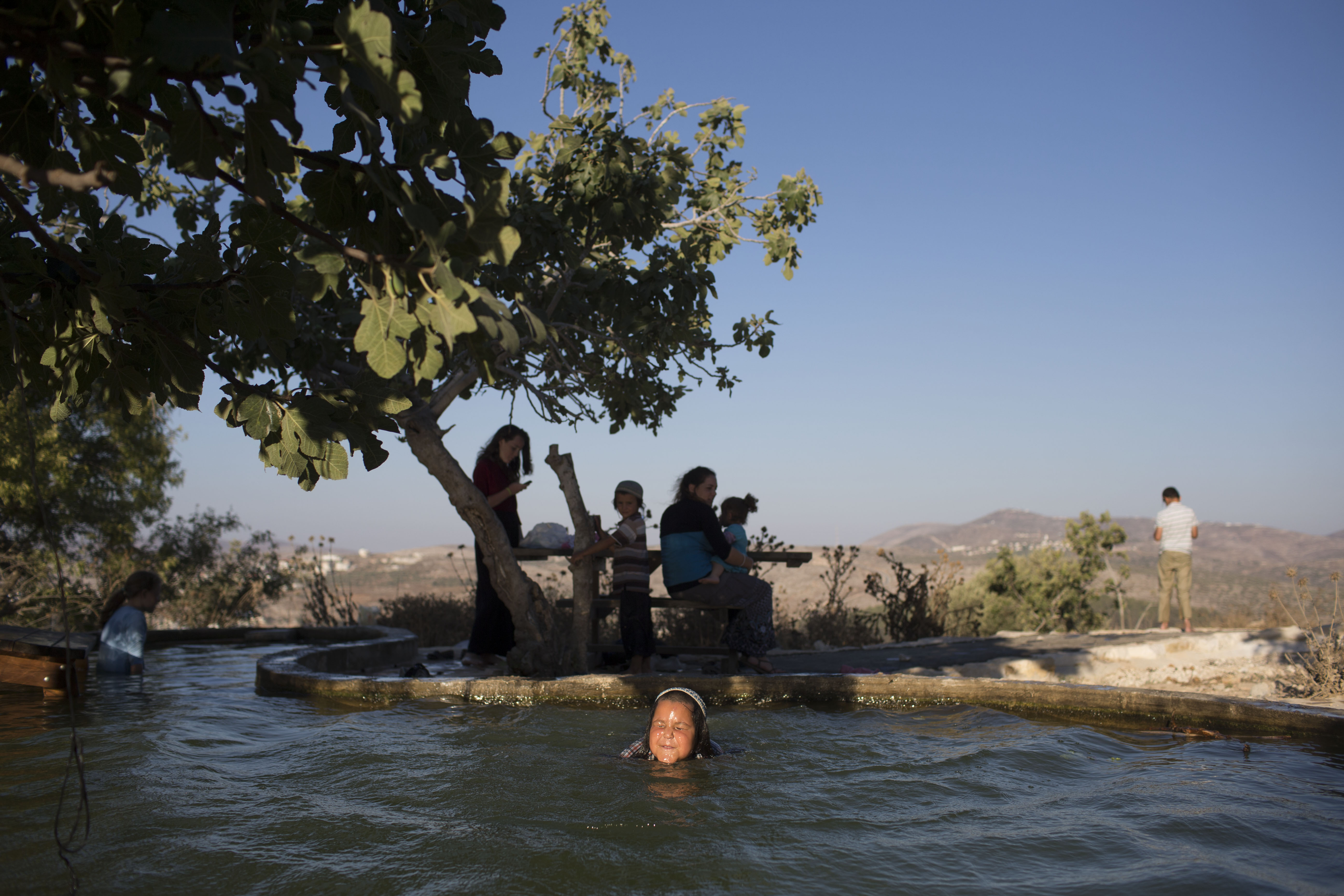 (Photo: A Jewish settler boy swims in a pool on July 22, 2013 near the Jewish outpost Settlement of Har Bracha, West Bank. By Uriel Sinai/Getty Images)