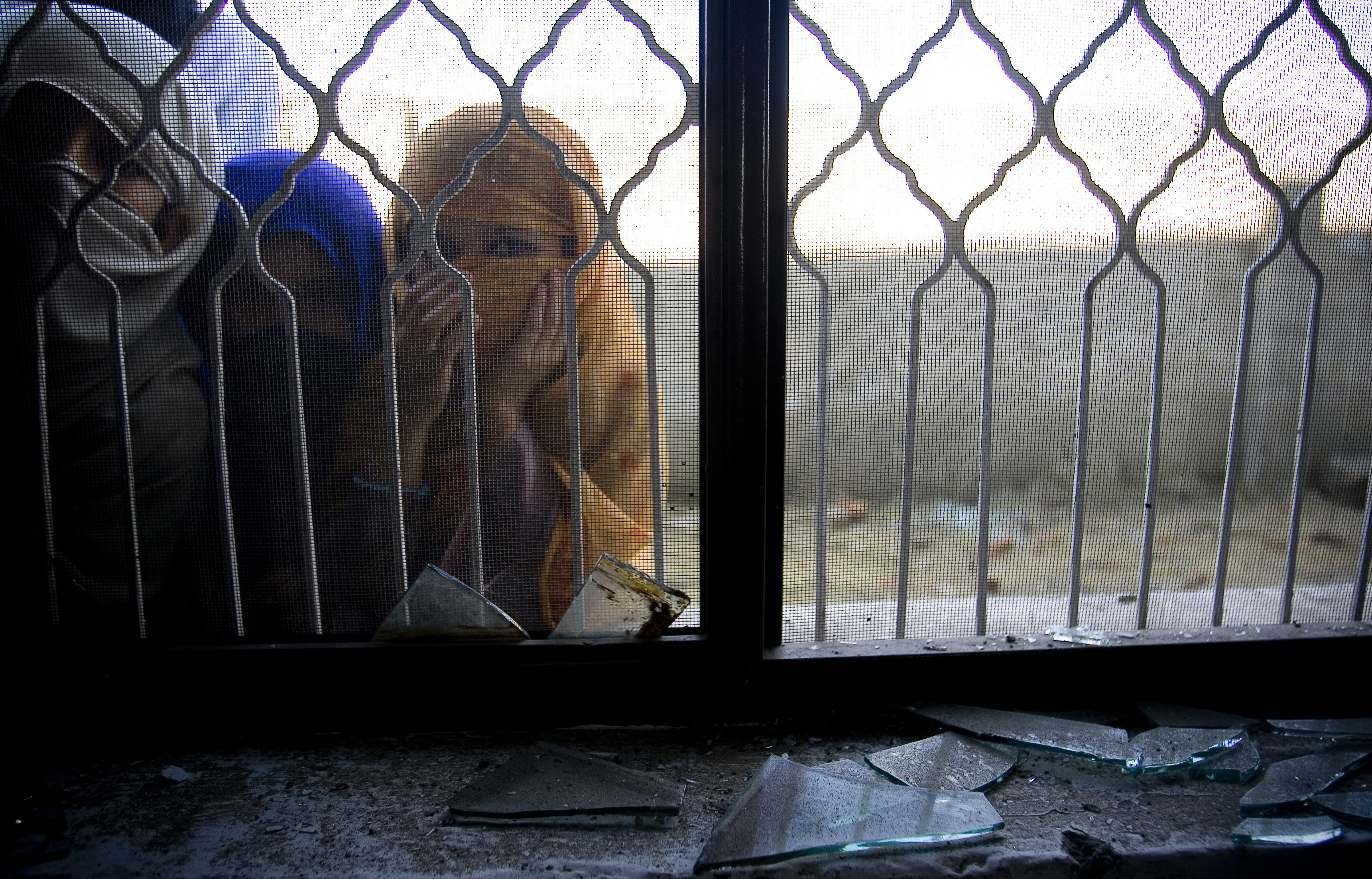 (Photo: Girl students look through the window at the damage in their classroom at Hathier High School, which was bombed on March 22, 2009 by Taliban militants opposed to female education, pictured on March 31, 2009 in Mardan, North-West Frontier Province, Pakistan. By Veronique de Viguerie/Getty Images.)