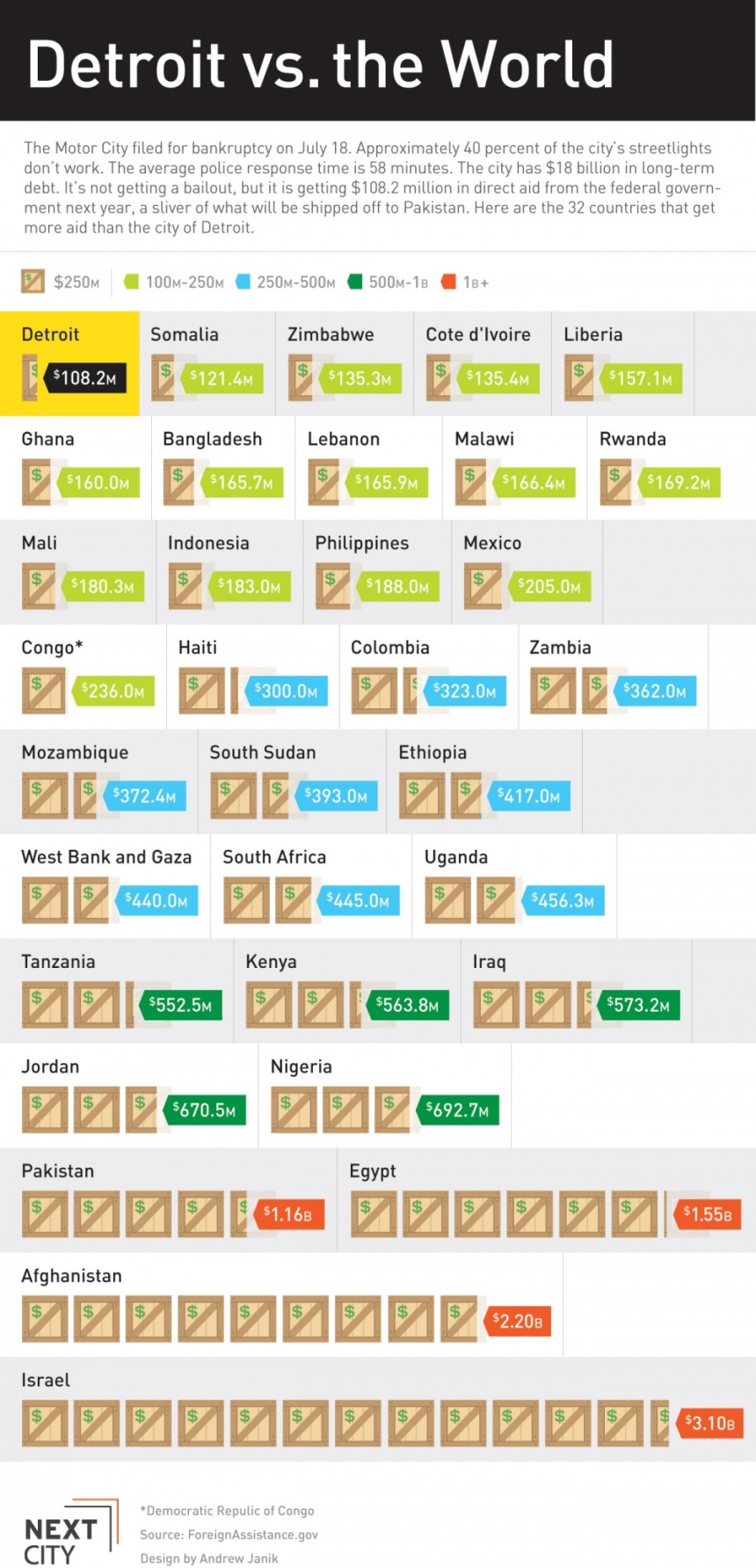 Bill Bradley compiled a list of countries that receive more more federal aid than Detroit: