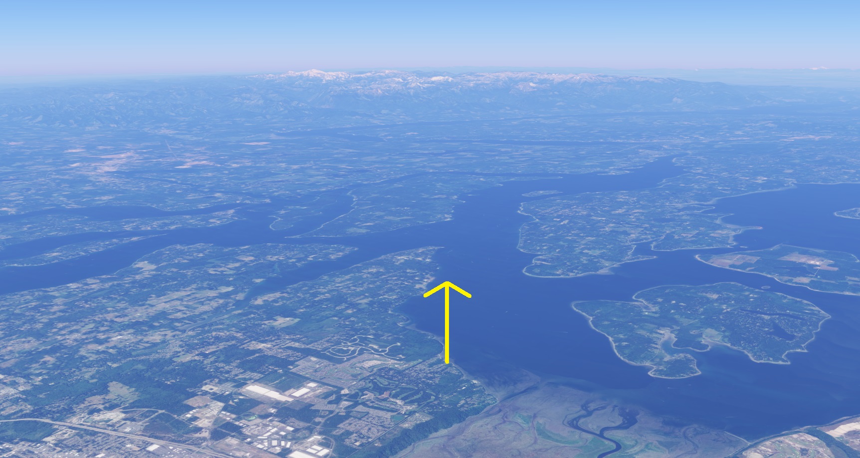 I next focused on the direction that the photographer was facing. Short shadows from the furniture suggested that it was around noon. The shadows also suggested that the porch faces roughly north, and the photographer was looking north-west. This reinforced my hunch that it was near Seattle as this is the only place that I could think of in the US where you can face north-west and see large mountains across a large expanse of salt-water surrounded with evergreen forests. It had to be in Puget Sound looking at the Olympic mountains.