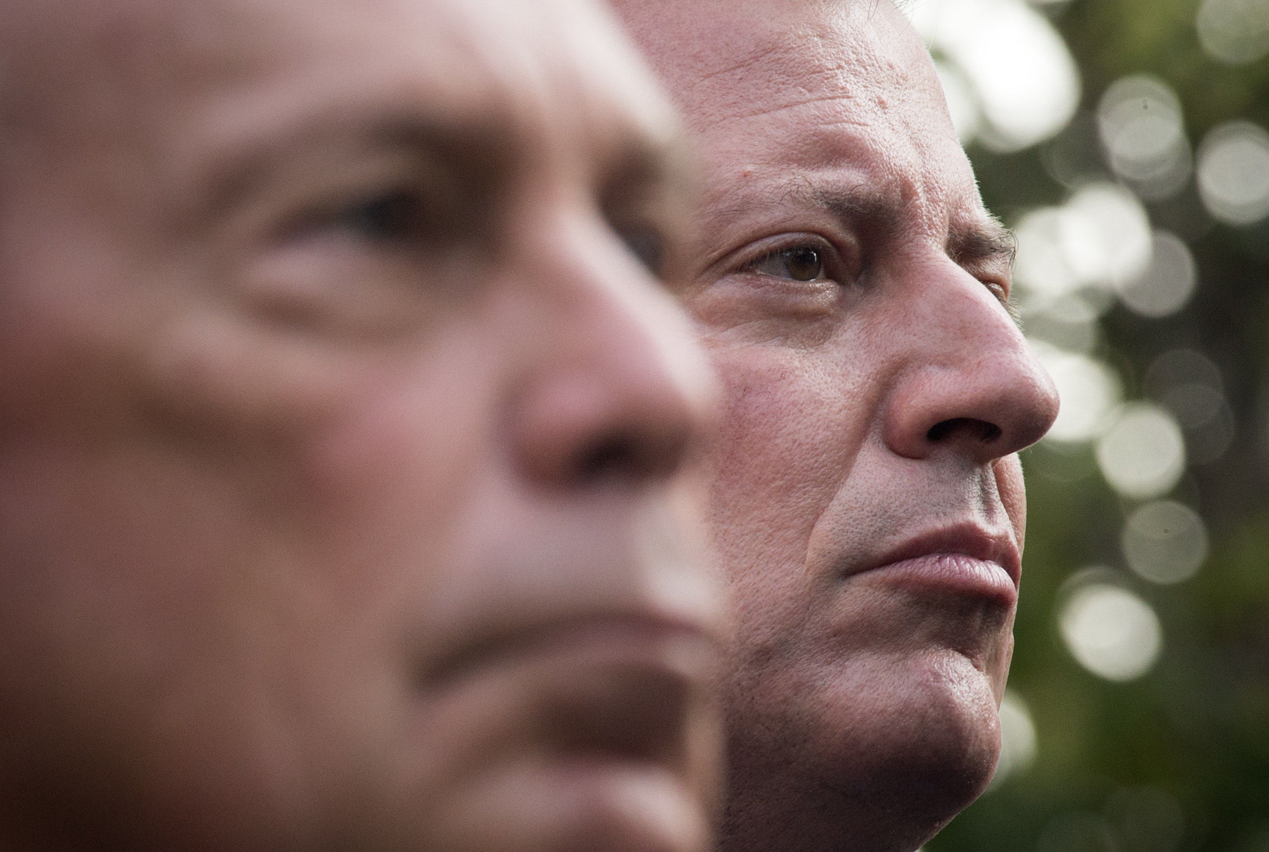 (Photo: New York Mayor Michael Bloomberg stands with his likely successor, Bill de Blasio, during the 9/11 Memorial ceremonies on September 11, 2013. By Adrees Latif-Pool/Getty Images)