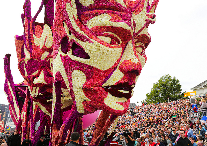 A float made of dahlia flowers cruises through Corso Zundert, an annual flower parade in the Netherlands.