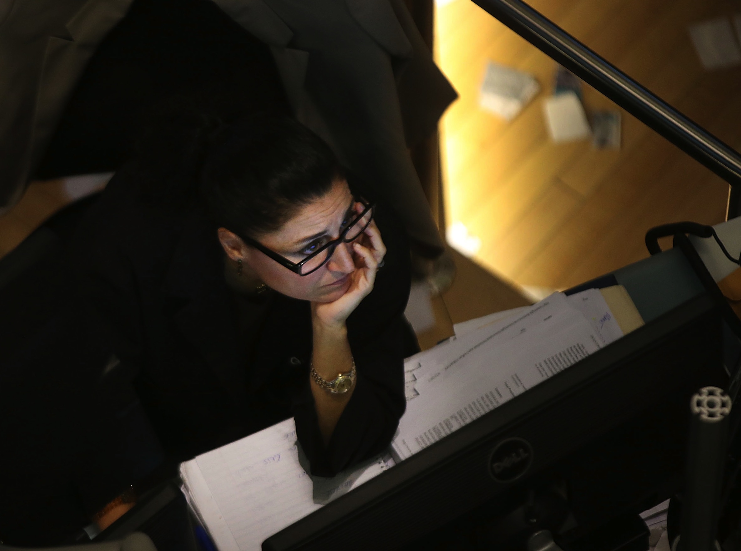 (Photo: A trader works on the floor of the New York Stock Exchange on October 7, 2013. As the impasse continues between the Republicans and Democrats in Washington, the Dow Jones Industrial Average, the S&P 500, and the Nasdaq all dropped by nearly 1% Monday. By Spencer Platt/Getty Images)