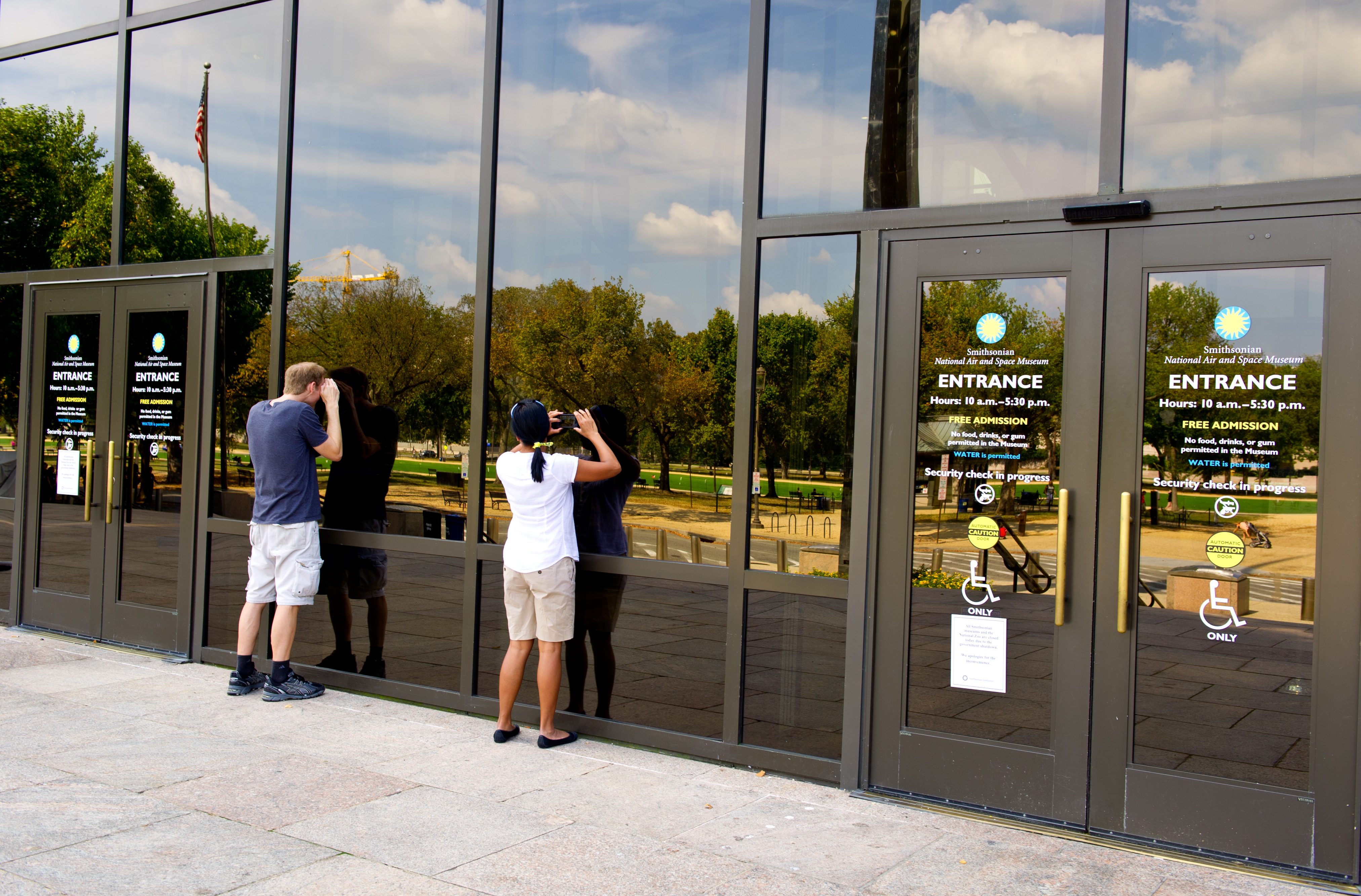 (Photo: Tourists peer into the closed Smithsonian National Air and Space Museum on October 5. By Karen Bleier/AFP/Getty Images)