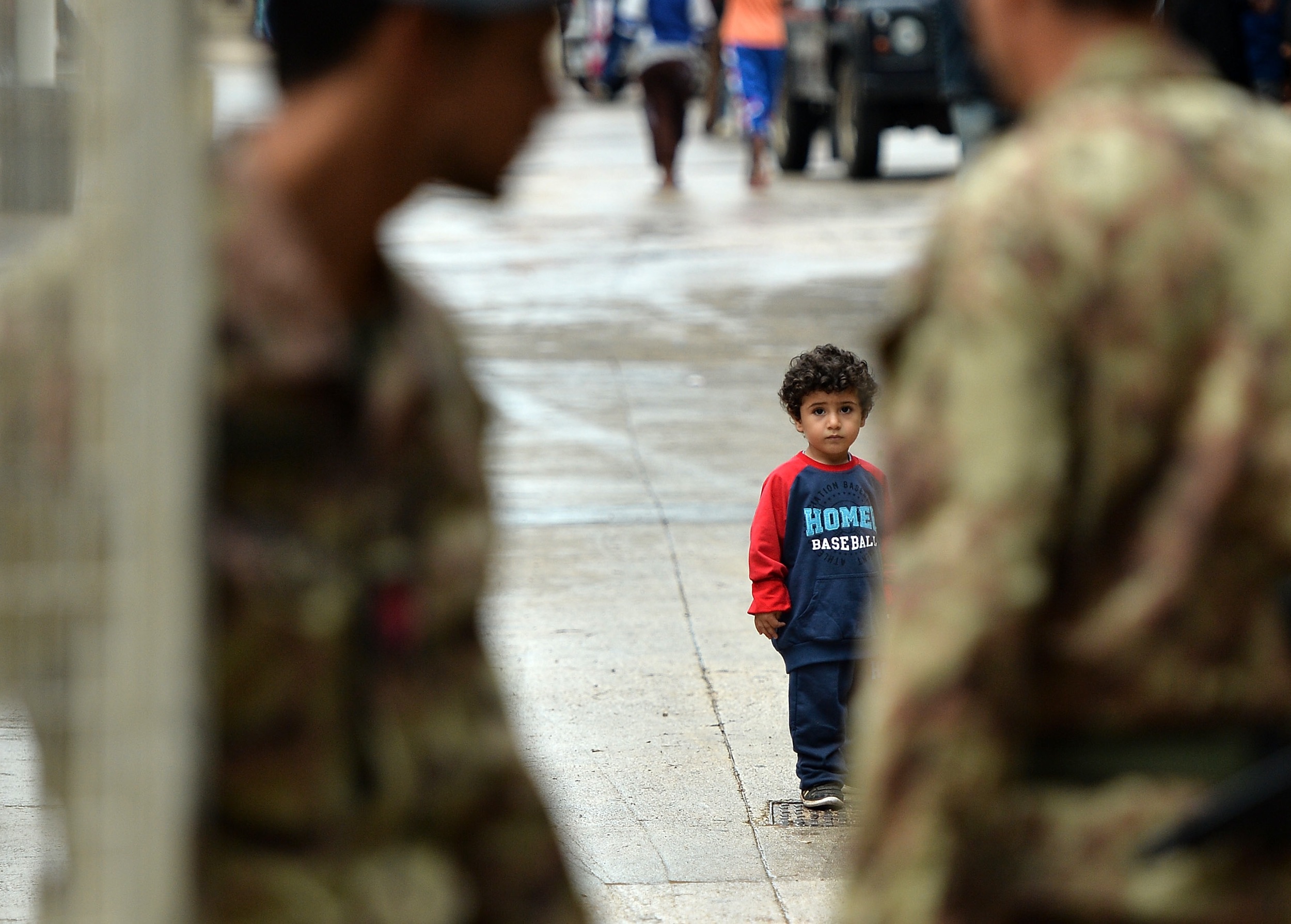 Immigrants are detained after their arrival in a temporary shelter center in Lampedusa, Italy on October 8, 2013. The search for bodies continues off the coast of southern Italy as the death toll of African migrants who drowned as they tried to reach the island of Lampedusa is expected to reach over 300 people. The tragedy has bought fresh questions over the thousands of asylum seekers that arrive into Europe by boat each year. By Tullio M. Puglia/Getty Images.