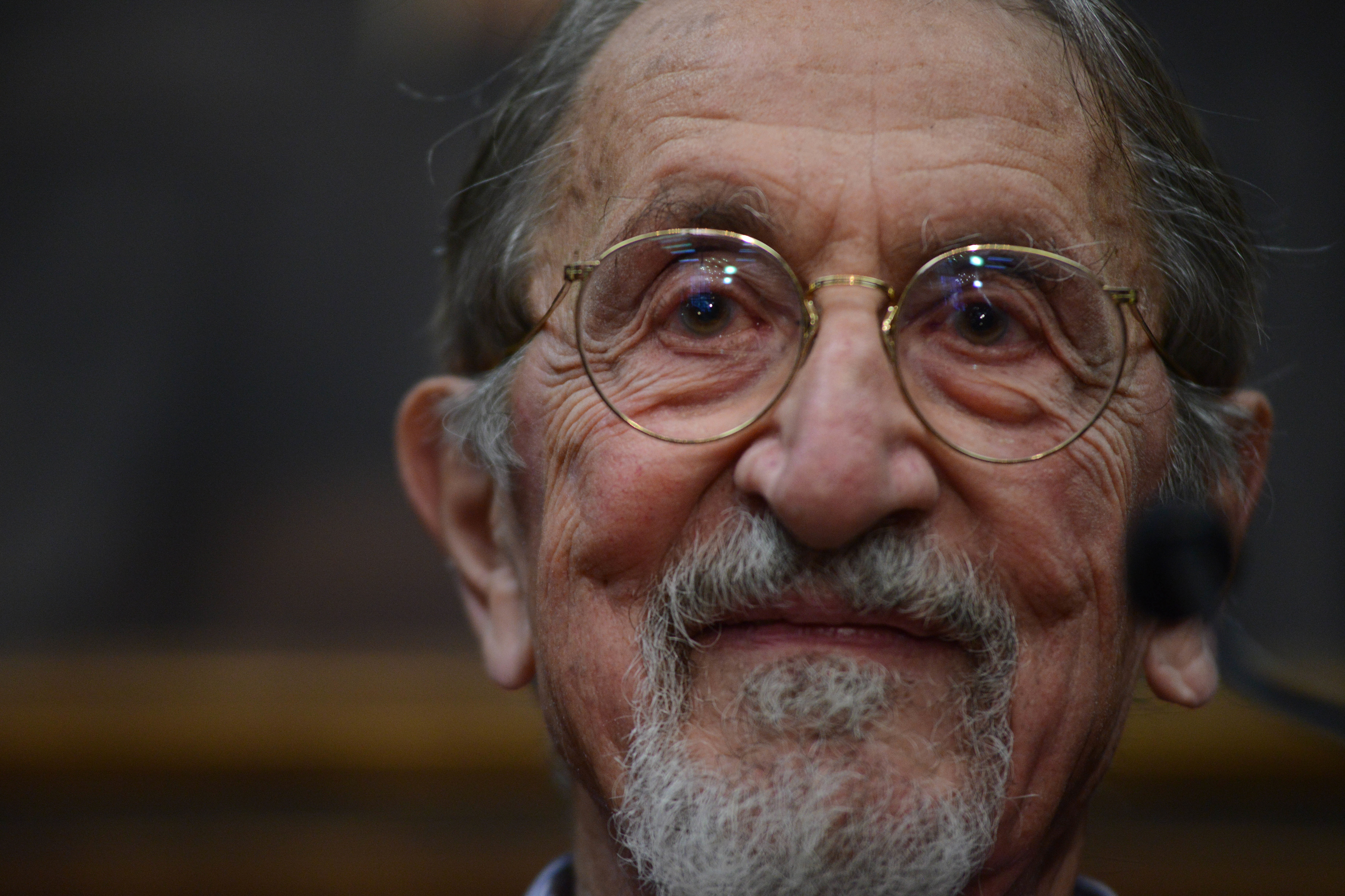 Harvard University emeritus professor Martin Karplus speaks to the media after winning the Nobel Prize in chemistry at Harvard University on October 9, 2013. Karplus shared the prize with Michael Levitt of Stanford University and Arieh Warshel of the University of Southern California for developing research that laid the groundwork for computer programs that are used by pharmaceutical company trying to develop drugs. By Darren McCollester/Getty Images.