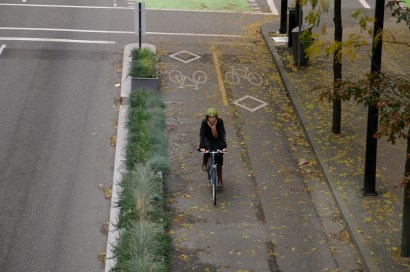 Dunsmuir Separated Bike Lane Protected / Separated bicycle lane on Dunsmuir Street, downtown Vancouver, Canada