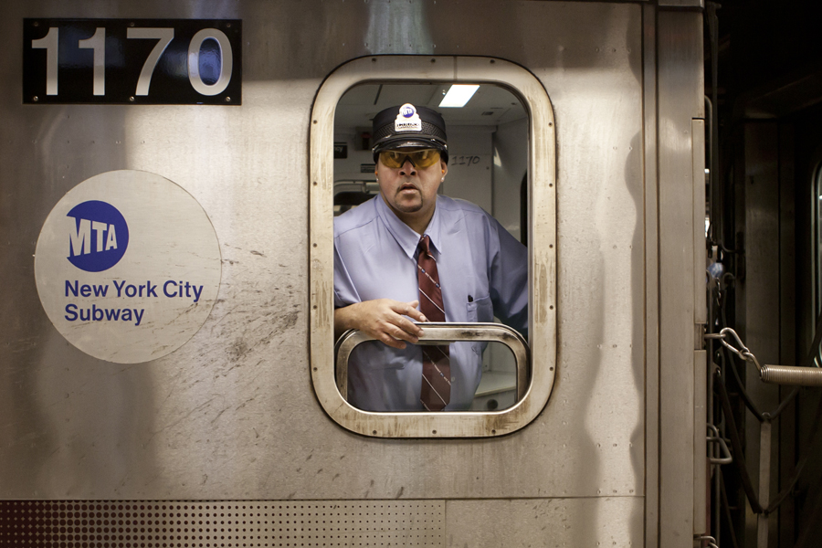 On assignment in New York in 2008, [Dutch photographer Janus van den Eijnden] started photographing underground, following in the tradition of Bruce Davidson, whose photographs of the subway in the 1980s he admired. Van den Eijnden spent hours underground day after day, waiting for the moment when the conductors didn’t notice him or their surroundings, looking lost in thought. “In almost every photo, the conductors are unaware they are being photographed,” he said. “Most of them noticed me a couple of seconds later, but those photos are much less interesting.