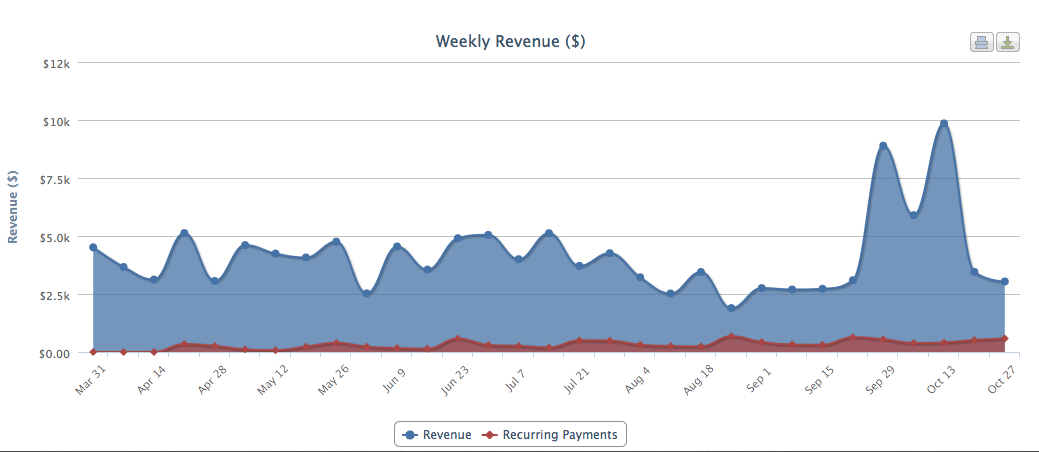 But when you look at that week by week, you see the twin peaks of the big news story (the shutdown and threat of default) and then back to our regular levels of income: