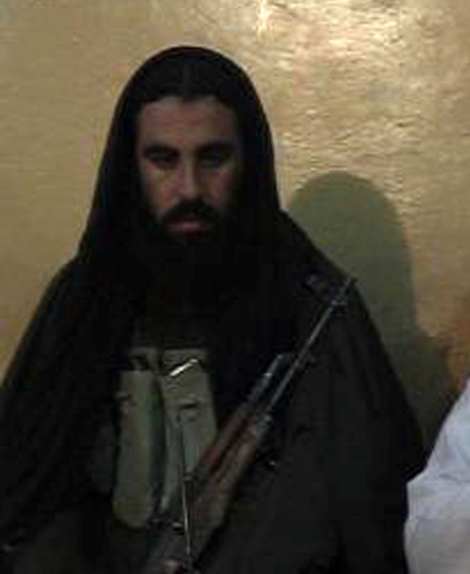 This video grab taken on November 7, 2013, shows Asmatullah Shaheen (R) caretaker chief Tehreek-e-Taliban Pakistan (TTP) announcing the new leader of TTP during a press conference in an undisclosed location in northwest Pakistan. The Pakistani Taliban appointed a hardline cleric linked to the attack on Malala Yousafzai as their new chief on November 7, throwing proposed peace talks with the government into serious doubt. Maulana Fazlullah, elected by the Taliban’s supreme council, led the militants’ brutal two-year rule in Pakistan’s northwest valley of Swat in 2007-2009, before a military operation retook the area. AFP PHOTO/THIR KHAN (Photo credit should read THIR KHAN/AFP/Getty Images)