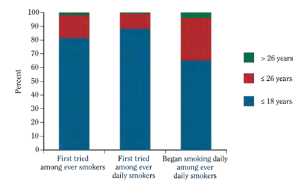 [T]he 18–20 set does more than just supply cigarettes to underage smokers. According to a mix of firm statistics, anecdata, and a damning confession by a Big Tobacco official, this age group also gets addicted to nicotine in big numbers. “A significant number do in fact start between 18 and 21,” John Banzhaf, the executive director of Action on Smoking and Health, told CNN in 2002. Among 18-to-25-year-olds, the average age of first use is 18.9 years old, according to cardiologist Mehmet Oz.