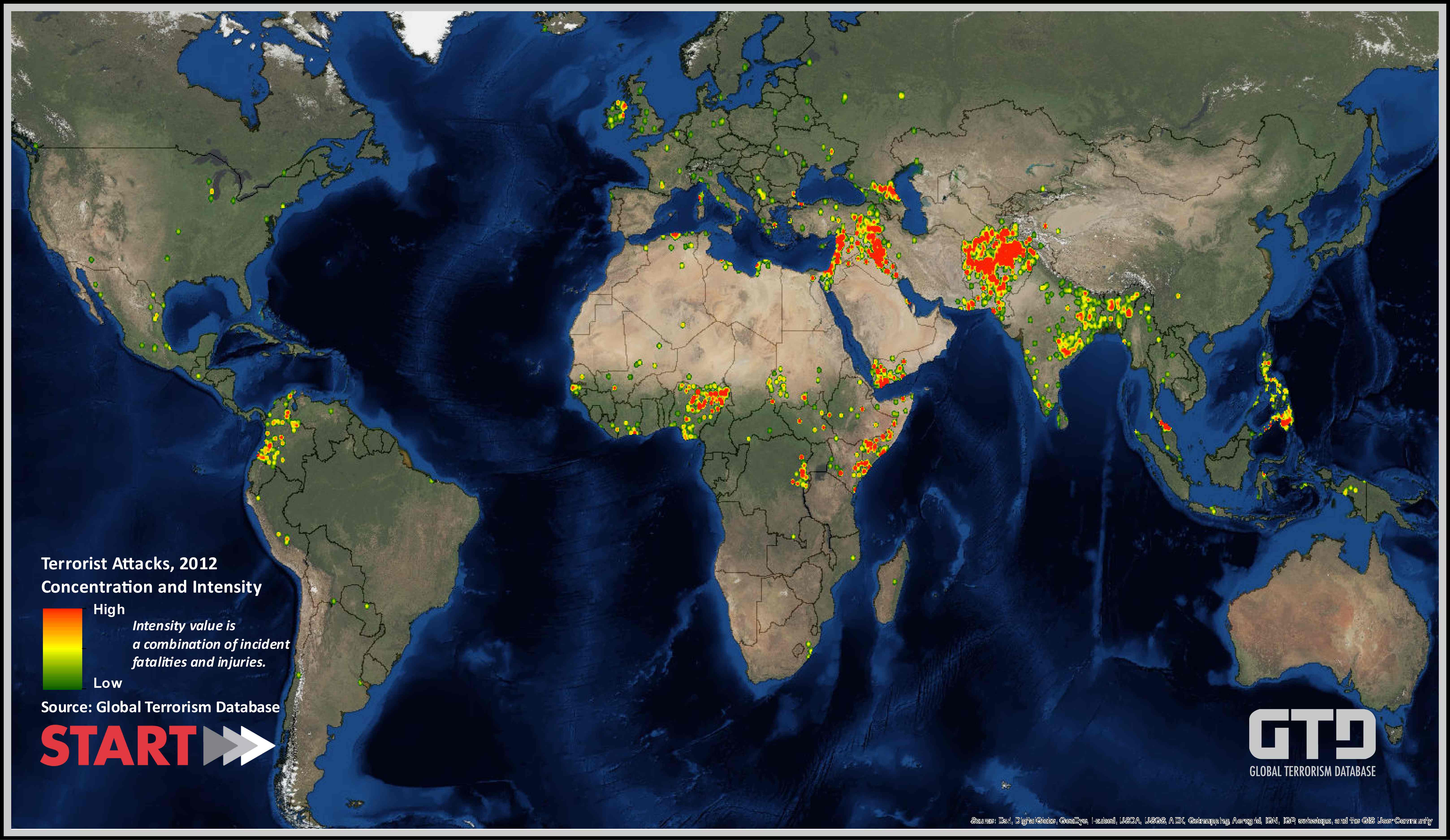 The National Consortium for the Study of Terrorism and Responses to Terrorism released new data on Thursday showing that the majority of the terrorist attacks and fatalities in 2012 happened in just three countries: Pakistan, Iraq, and Afghanistan: