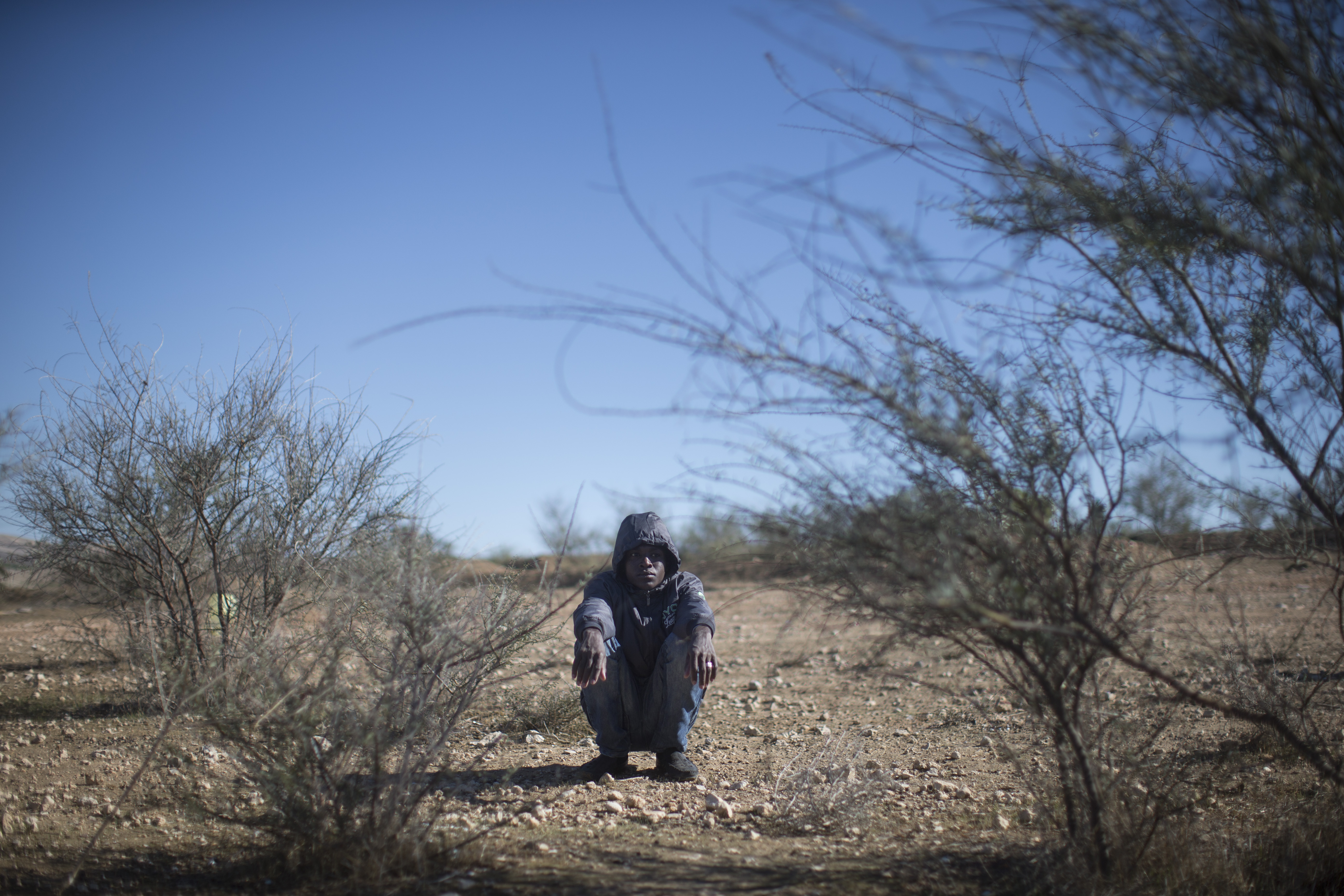 A man rests during a protest walk by African migrants on a highway on the way to Jerusalem in protest after abandoning a detention facility in the southern Israeli desert on December 16, 2013 near Beer Sheva, Israel. Over 100 African migrants abandoned the ‘open’ Israeli detention center, which opened last week, to march to Jerusalem to protest a law allowing authorities to keep them in open-ended detention until the resolution of their asylum requests are granted or they are deported or volunteered to leave the country. More on the controversy here. By Uriel Sinai/Getty Images.