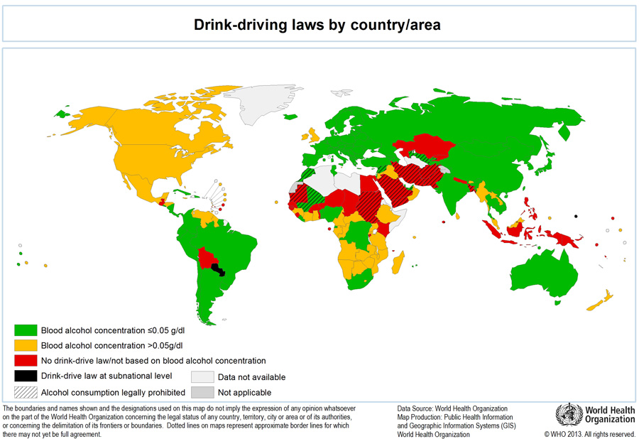 Today, the federal limit in the US is 0.08 percent. That’s much more in line with other countries, but still more liberal than most.