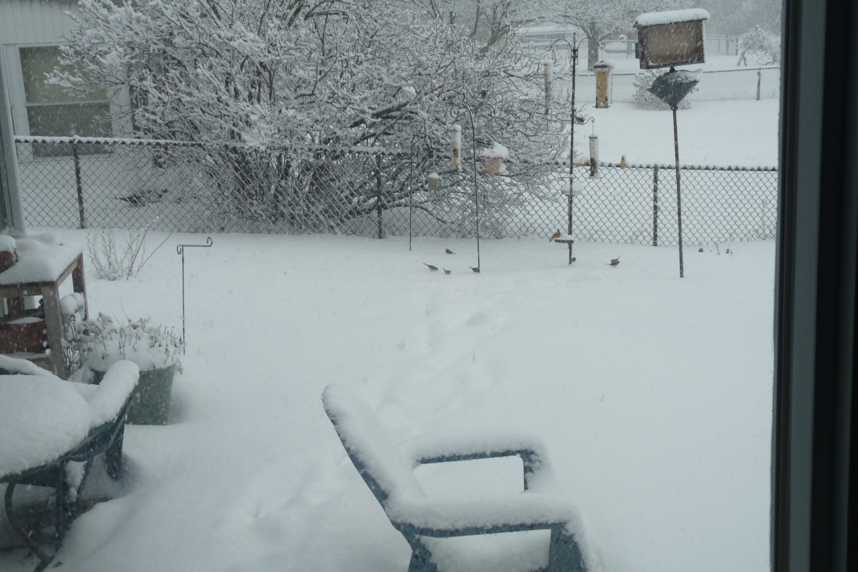 Decatur, Indiana, January 5th, 2.55 pm. “The snow is getting heavier in front of the arctic temperatures set to arrive tonight and tomorrow (-25° to -35° ). I put extra bird feed out for our feathered friends.”