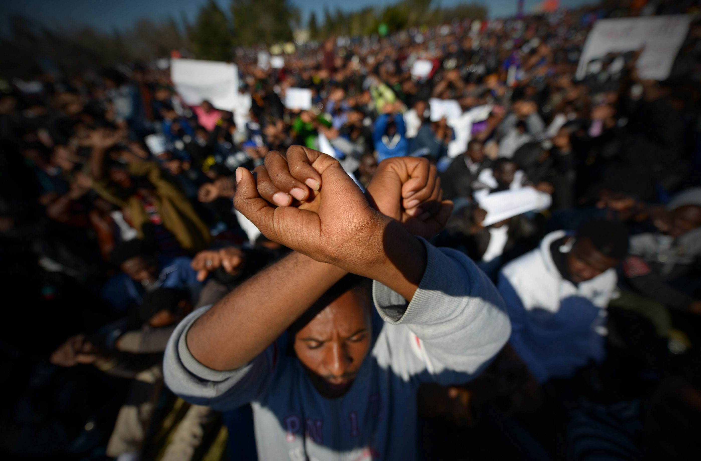 (Photo: Thousands of African asylum seekers demanding to be recognized as refugees rally outside the Israel’s parliament Knesset on January 8, 2014. By Salih Zeki Fazlioglu/Anadolu Agency/Getty Images)