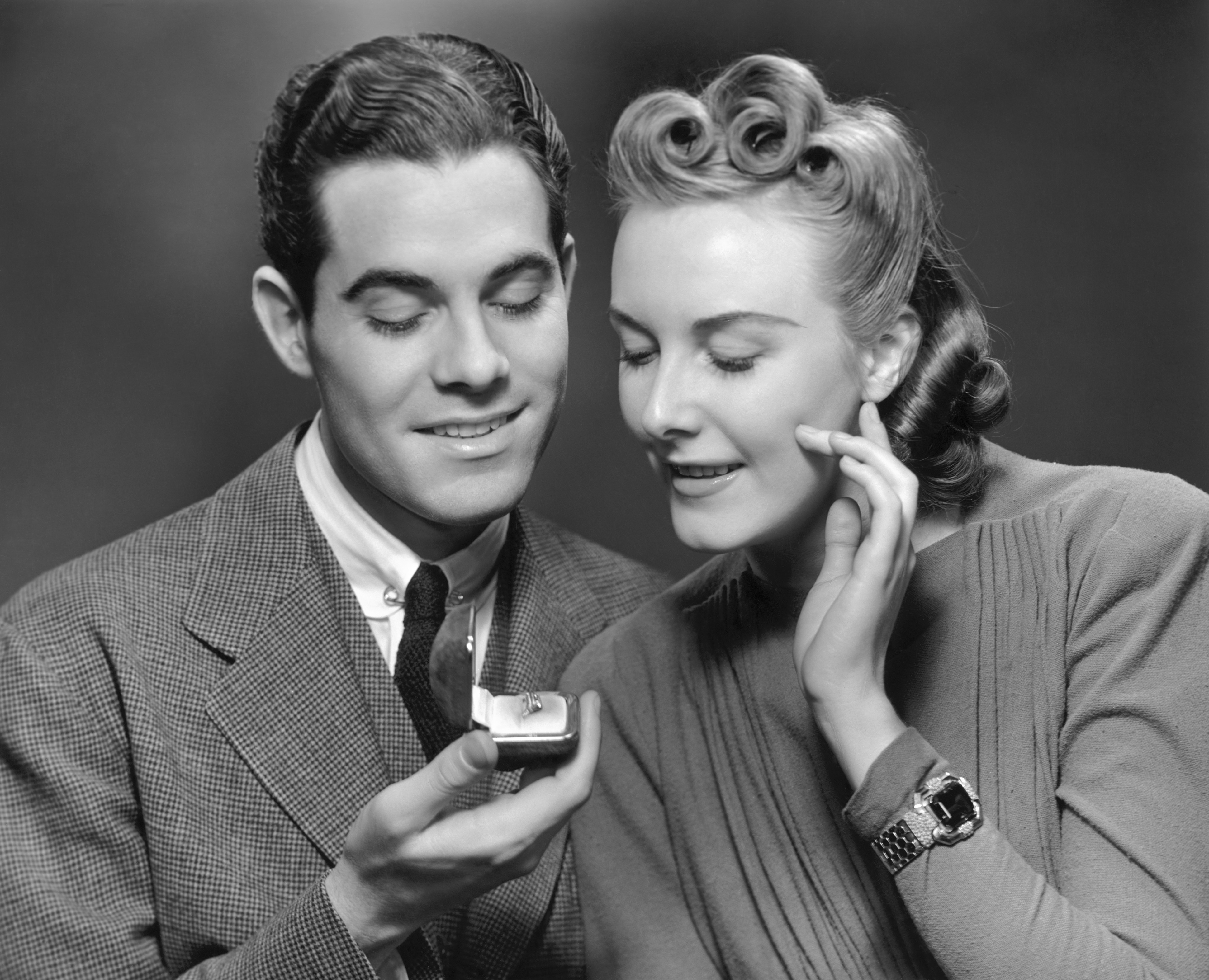 (Photo: Couple with engagement ring, circa 1950s. By George Marks/Retrofile/Getty Images.)