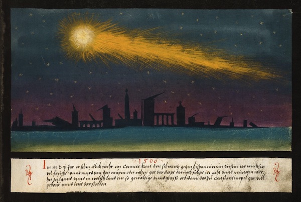 (Image of 16th-century depiction of comet via Collectors Weekly and Taschen)