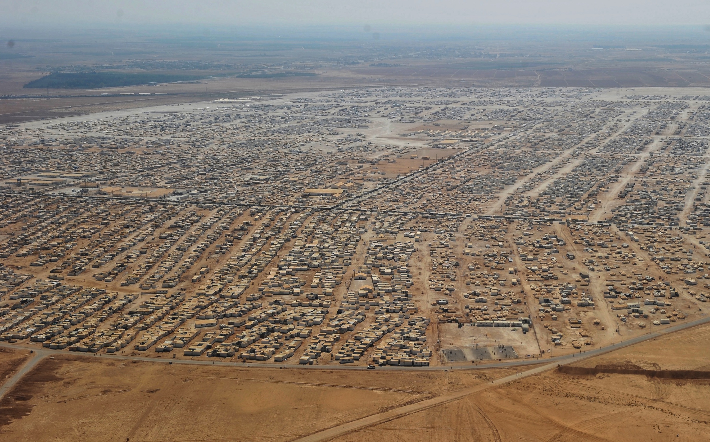 (Photo: An aerial view shows the Zaatari refugee camp near the Jordanian city of Mafraq, some 8 kilometers from the Jordanian-Syrian border, on July 18, 2013. The northern Jordanian Zaatari refugee camp is home to 115,000 Syrians. By Manel Ngan/AFP)