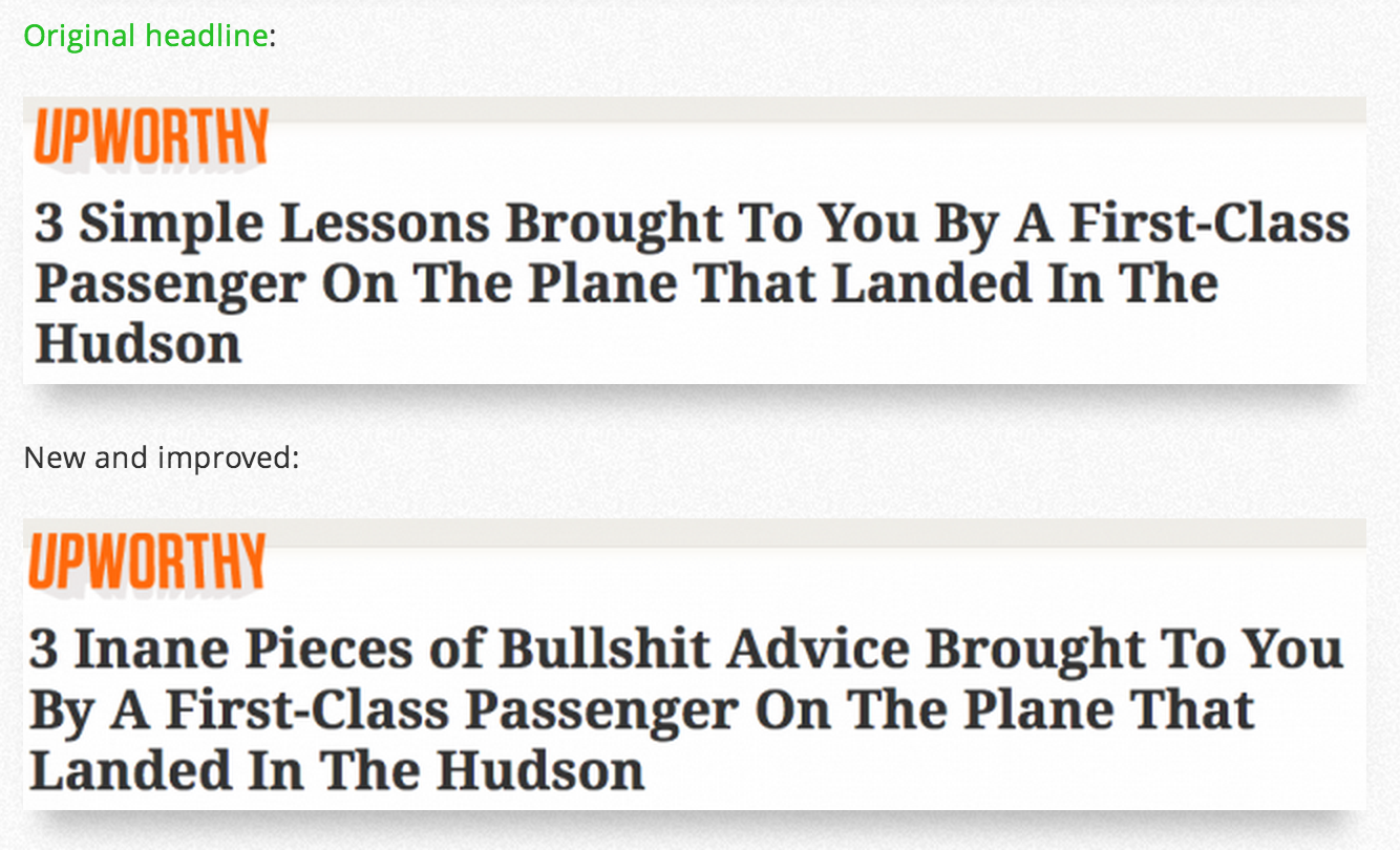 The “new and improved” headline seen above was generated a new Chrome app called Downworthy: