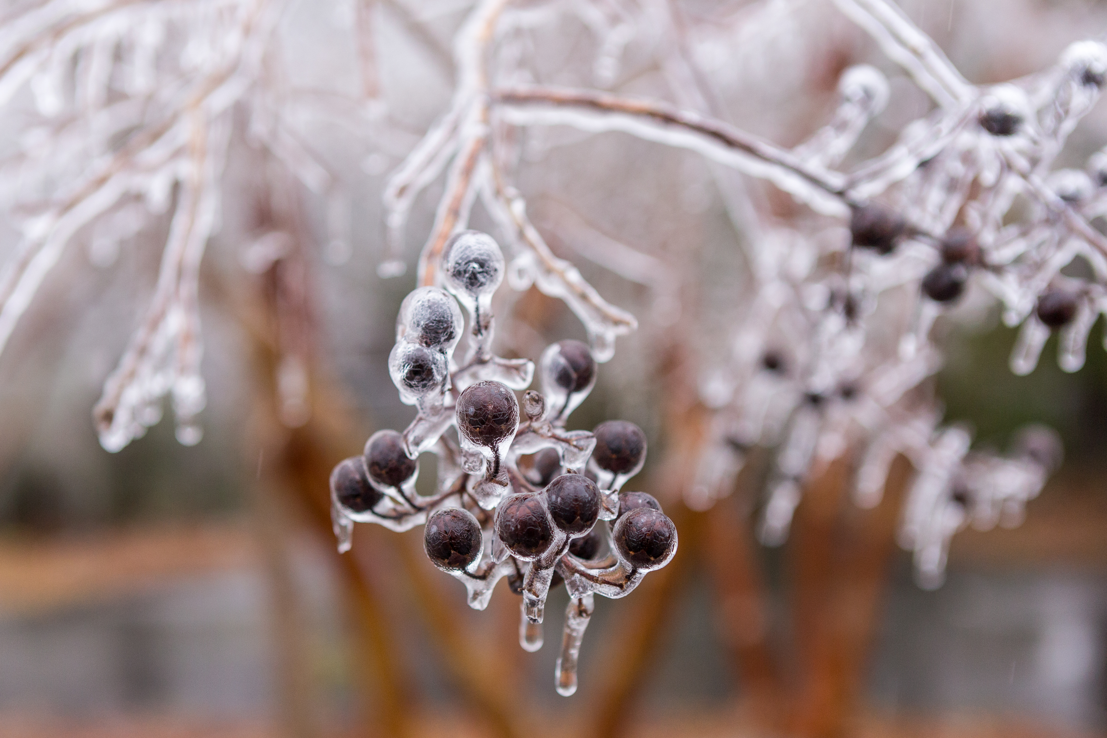(Photo: Crape myrtle berries are covered in ice after a rare winter ice storm swept across the South February 12, 2014 in Summerville, South Carolina. More than 400,000 customers have lost power across the Southeast and at least 13 deaths caused by the storm. By Richard Ellis/Getty Images.)