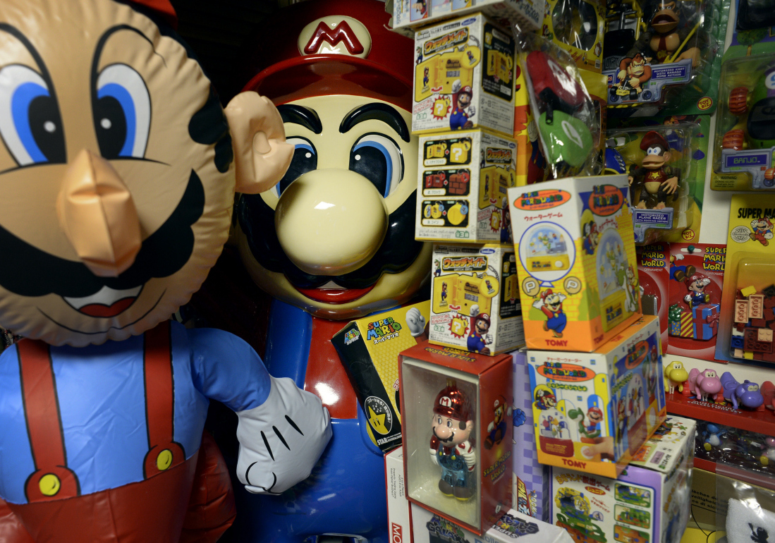 Brett Martin exhibits a pair of Mario retail displays in his “Video Game Memorabilia Museum” at his home in Littleton, Colorado on February 25, 2014. His collection, with 8030 pieces, has been recognized by the Guinness Book of World Records as the largest collection of video game memorabilia. Martin says half of his collection is connected to Mario game series. By Craig F. Walker/The Denver Post/Getty Images.