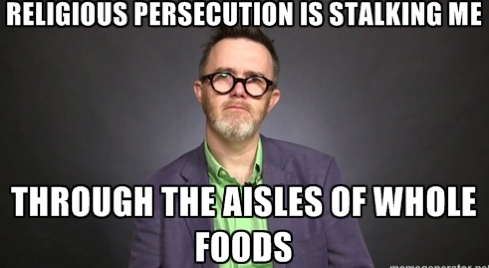Hand me the world’s tiniest violin. If someone is fired for his religious beliefs, he can sue (which is more than can be said for gay people fired for their orientation in many states). The rest is truly spectacular whining. There are always going to be social pressures that favor or disfavor certain views. What about a gun control enthusiast in rural Texas? Or a pro-choicer in Mississippi?