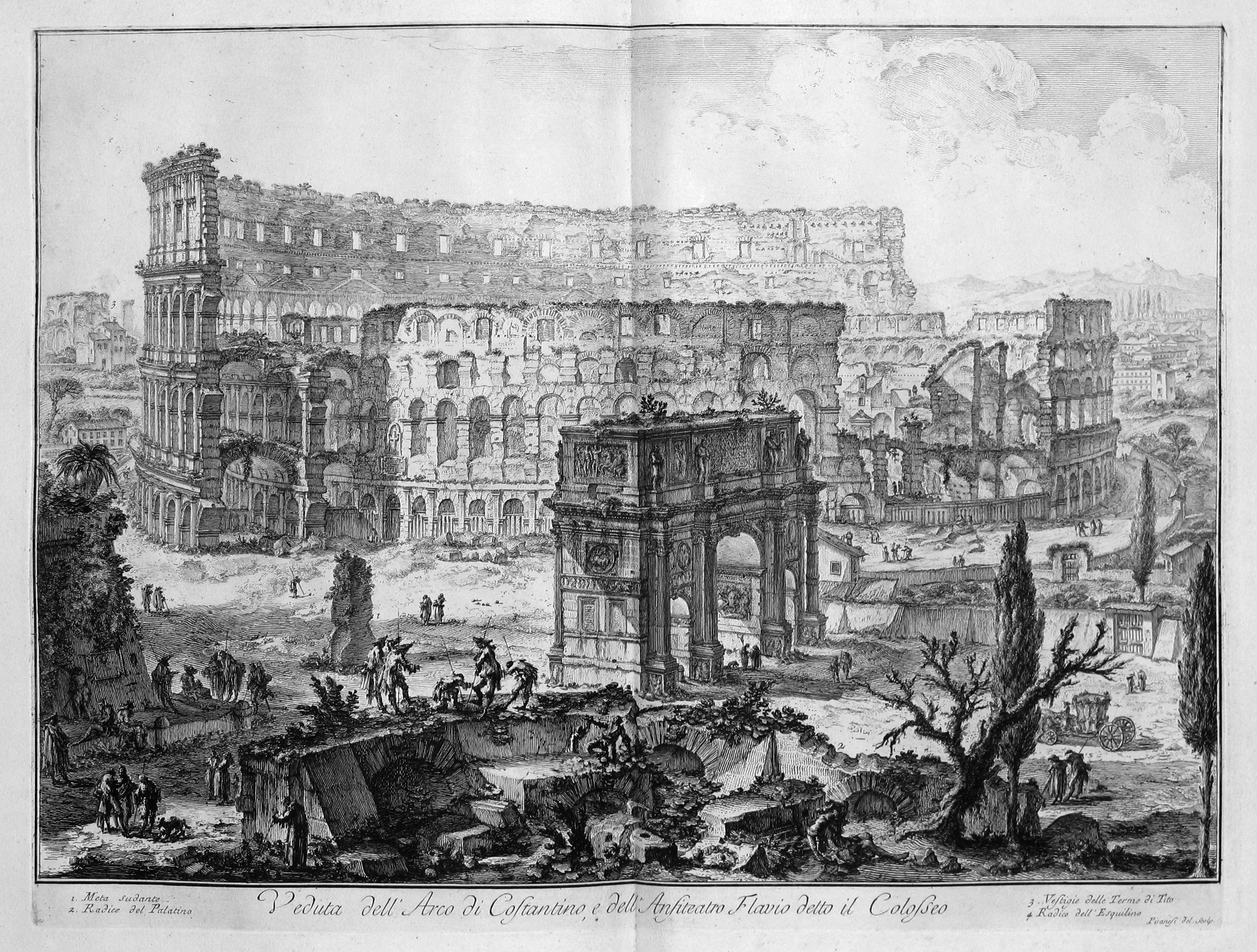 (Piranesi’s Veduta dell’ arco di Costantino, e dell’ anfiteatro Flavio detto il colosseo, 1760, via Leiden University.)