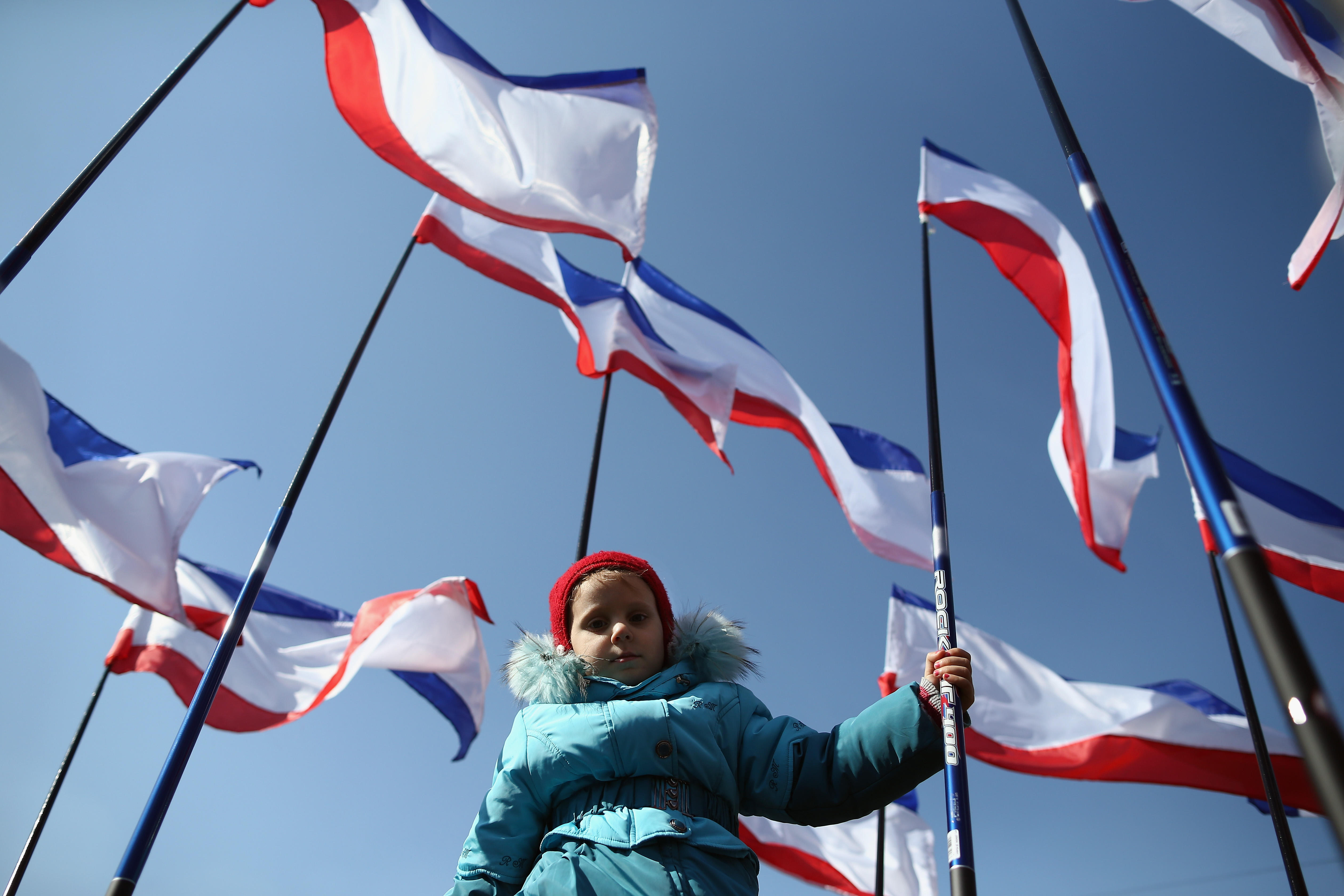 (Post photo: A girl holds a flag during a Pro Russian supporters rally in Lenin Square on March 15, 2014 in Simferopol, Ukraine. As the standoff between the Russian military and Ukrainian forces continues in Ukraine’s Crimean peninsula, world leaders are pushing for a diplomatic solution to the escalating situation. Crimean citizens will vote in a referendum tomorrow on whether to become part of the Russian federation. By Dan Kitwood/Getty Images. Thumbnail photo: Andrew Hart)