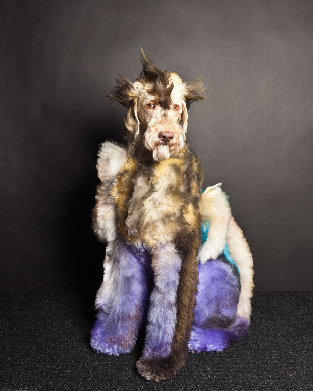 New Zealand-born, NYC-based photographer Paul Nathan shines the light on some perfectly primped canines in his new book Groomed, released this Spring by Pelluceo Publishing. Shooting at multiple high-profile grooming competitions, Nathan explores the world—and art—of dog grooming, capturing the creations of some of the world’s top dog groomers. The selection here are from what’s known as the ‘creative’ category. Humorous and delightful, Nathan’s pre-show portraits reveal character in both the artist and the canvas. He recently told us more about the world of dog grooming.